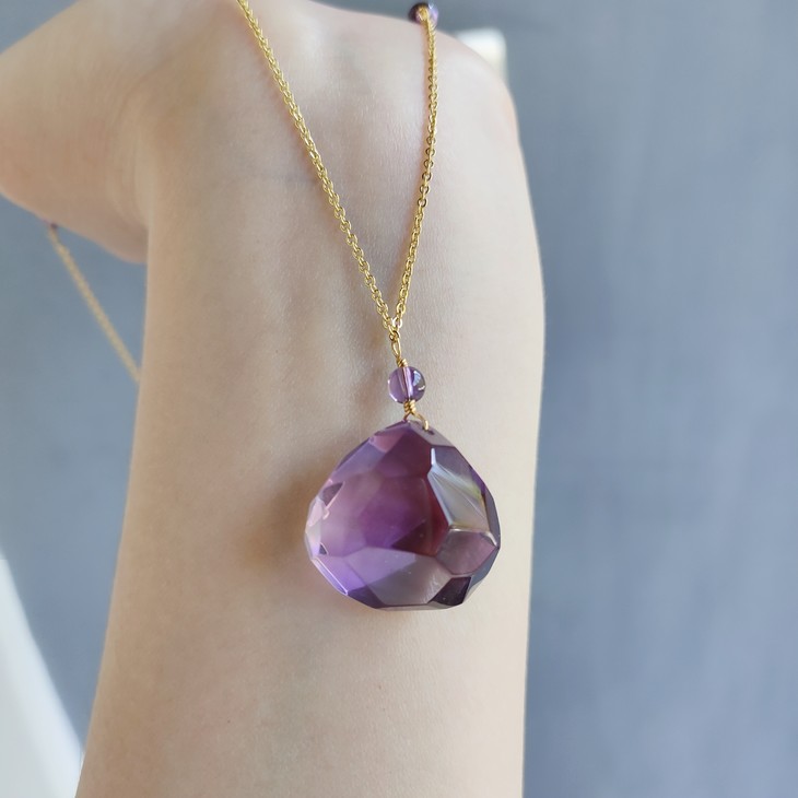 编码:10505190021紫水晶项链(14K包金)尺寸:20.3*21.8mm售价:698元