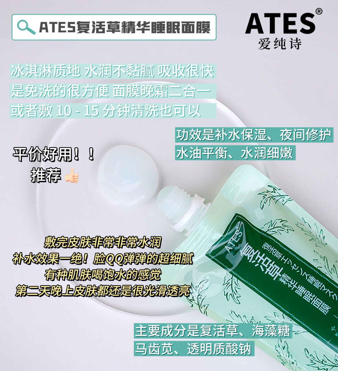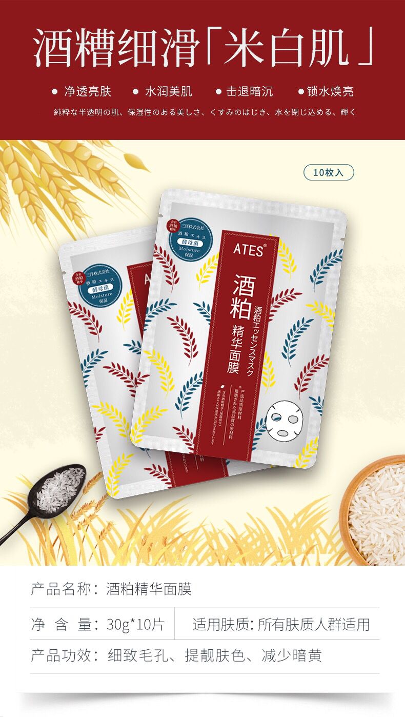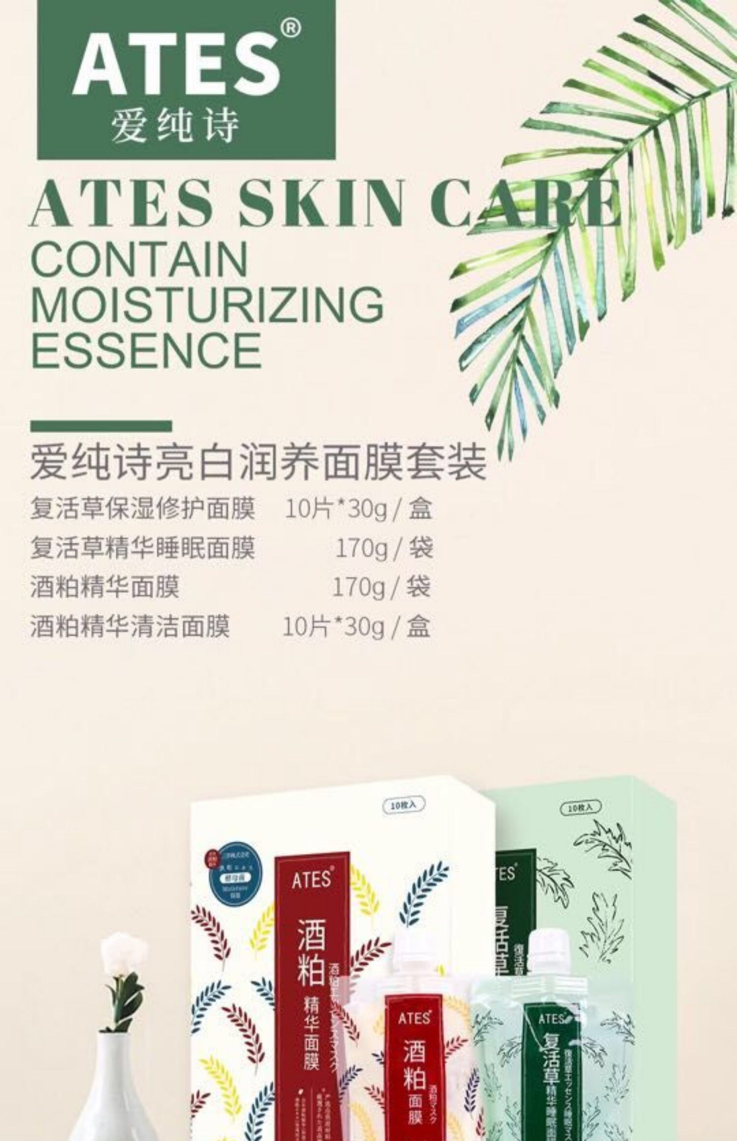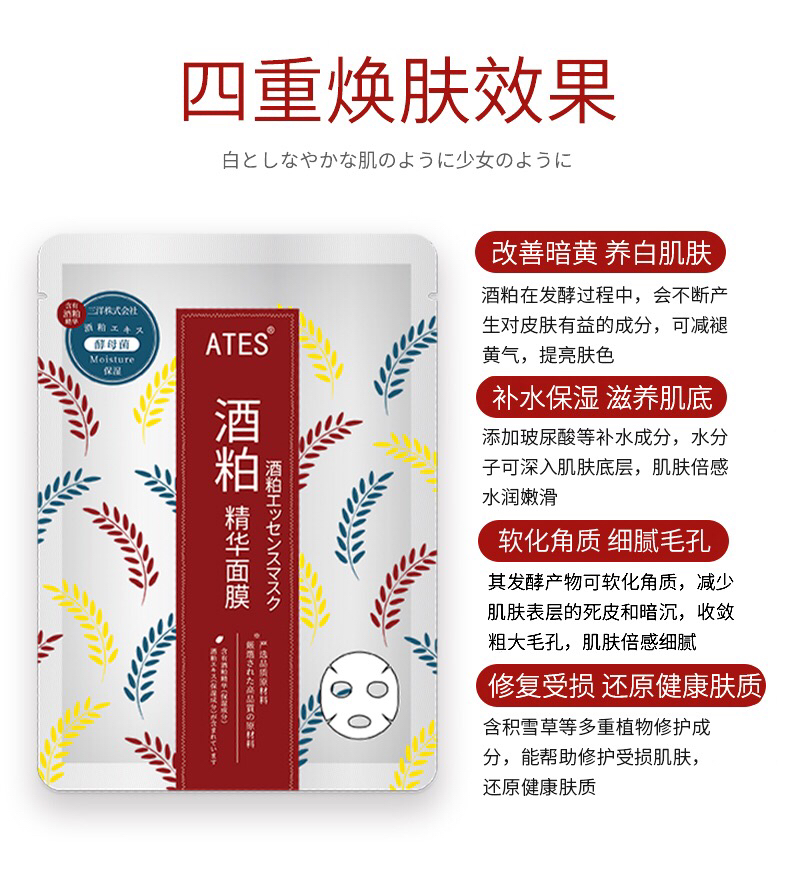 日本ATES爱纯诗-酒粕面膜-复活草面膜-补水净透亮肤-金卡会员8折