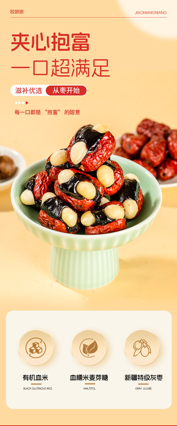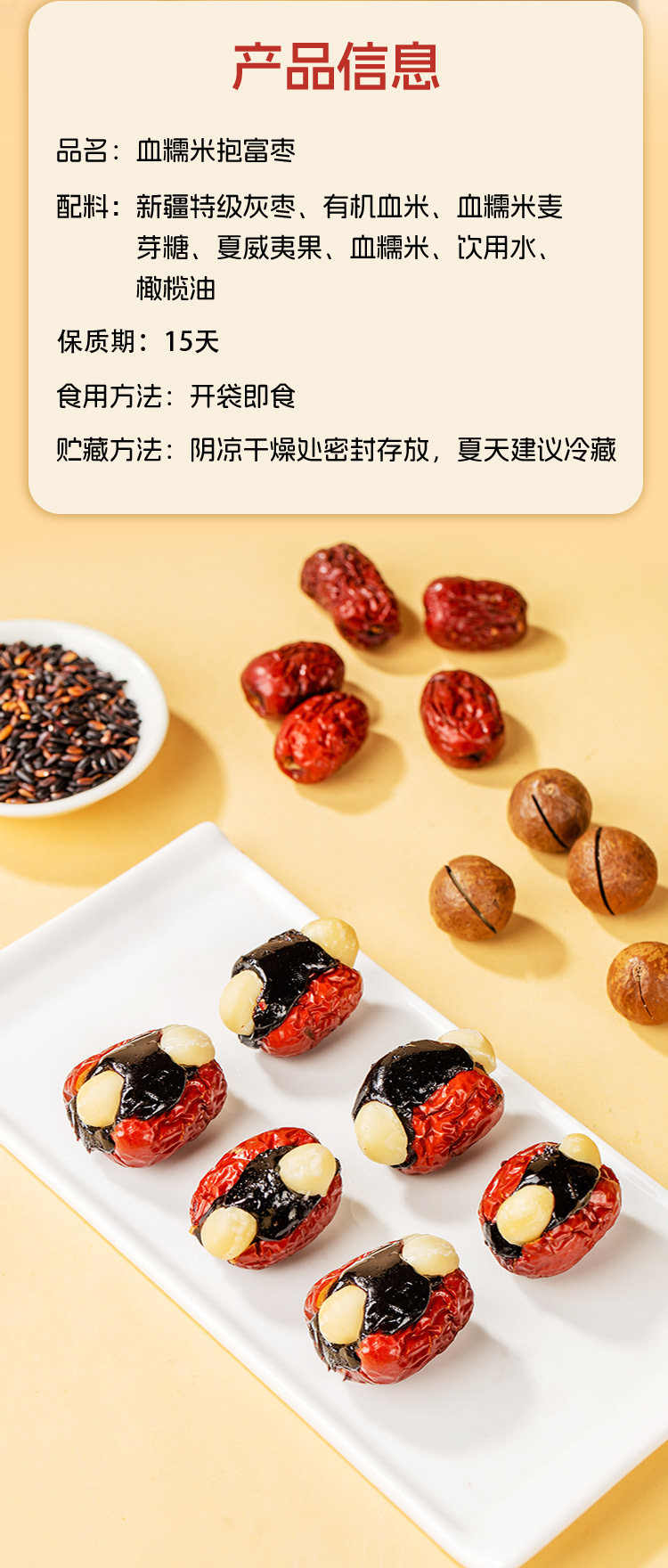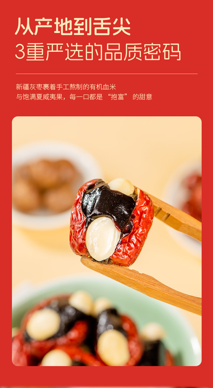 【胶娘娘】血糯米抱富枣夏威夷果有机血米新疆灰枣夹心125g/袋