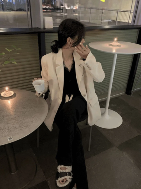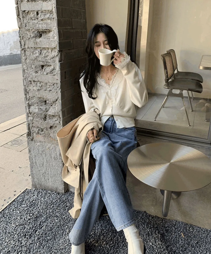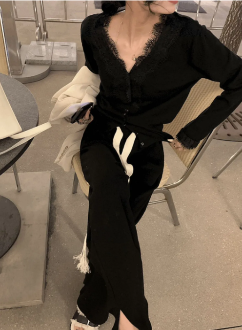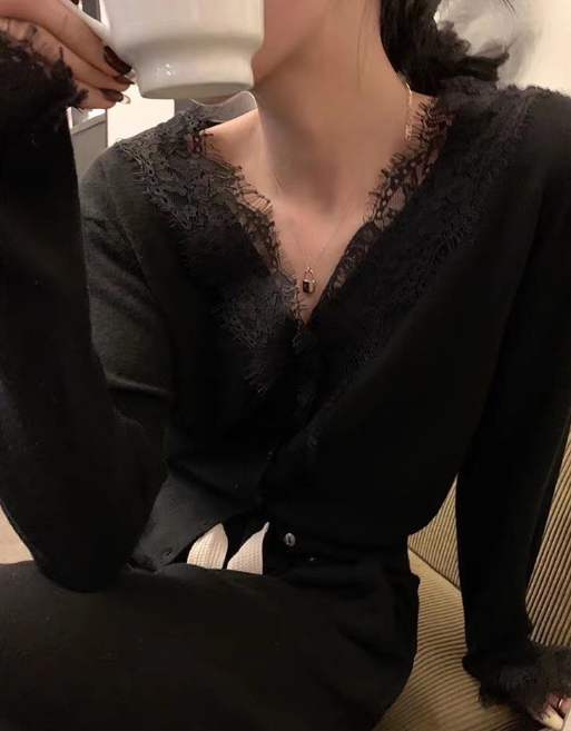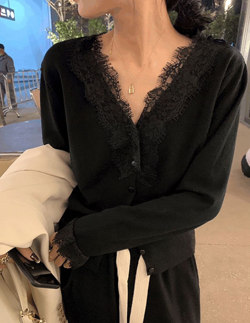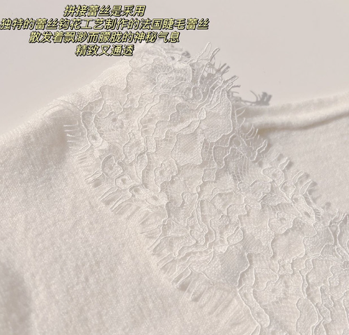 领口细密睫毛蕾丝,衬托出V领更迷人