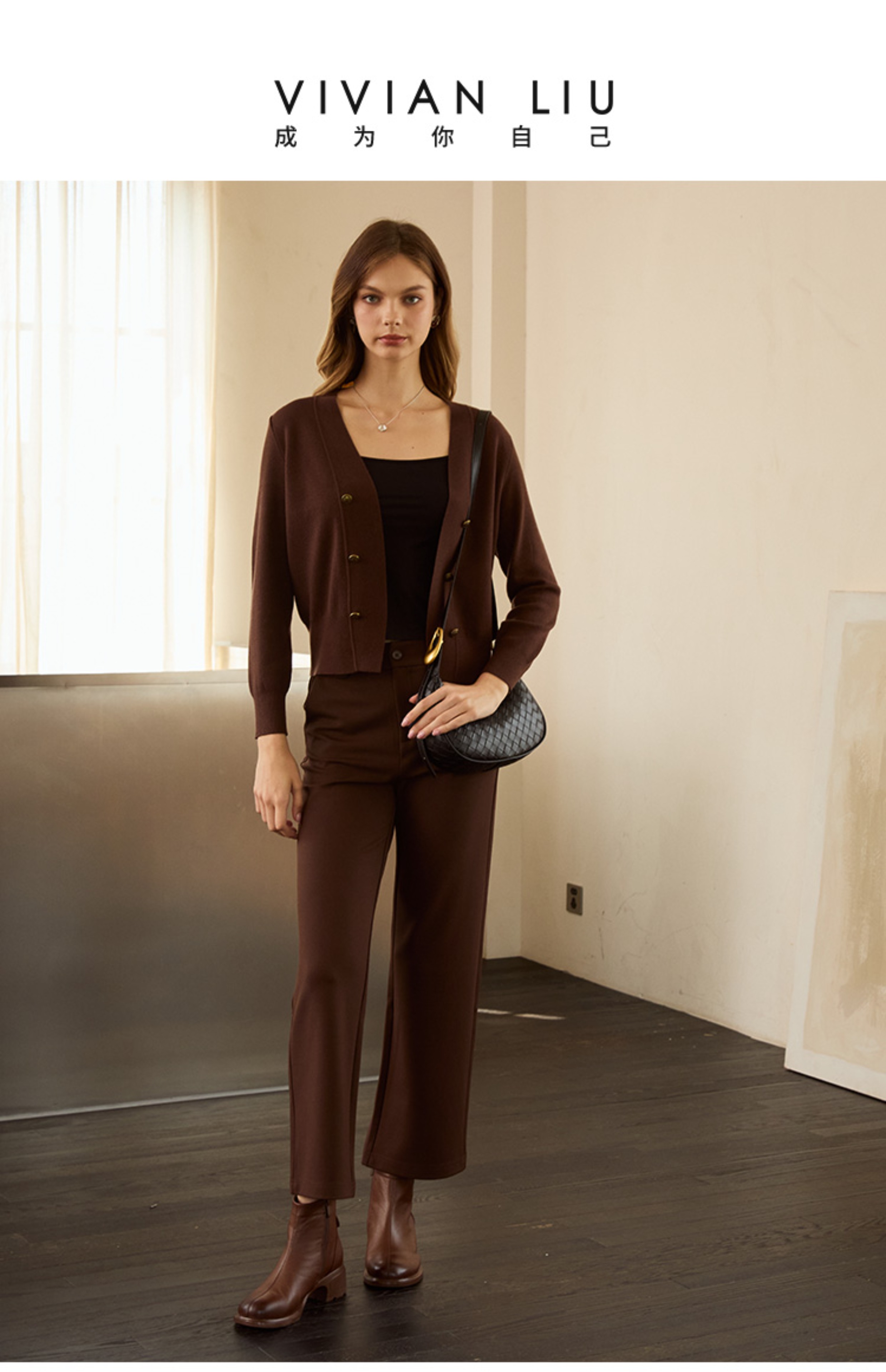 VIVIAN LIU薇薇安刘TD2447503初秋女装新款斜插兜针织直筒长裤