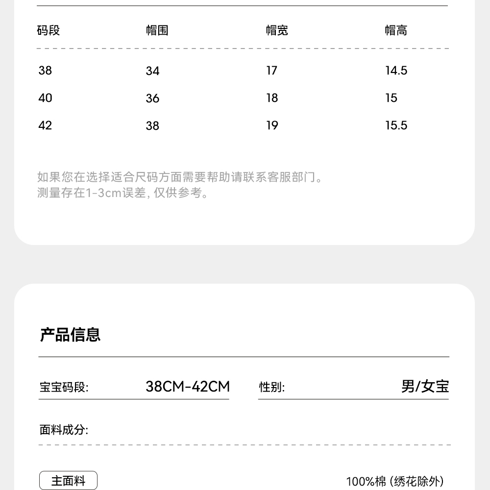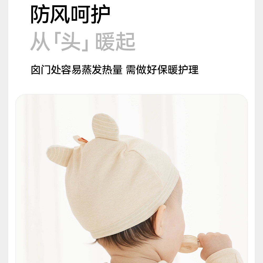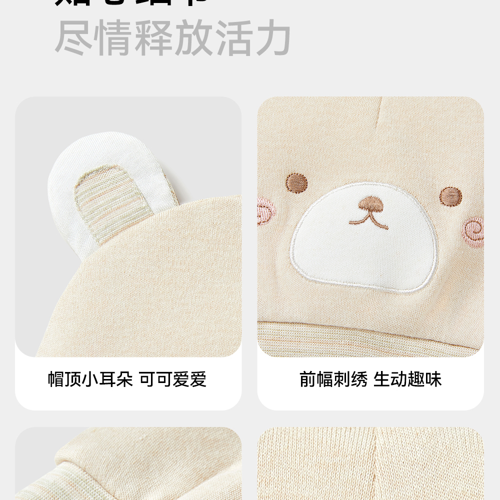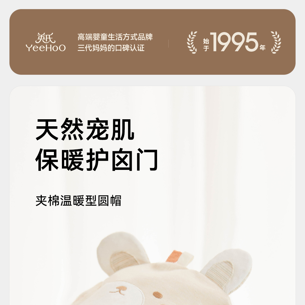 英氏儿童帽子纯棉秋冬保暖婴儿夹棉胎帽2024新款圆帽YLSJJ3Q015A