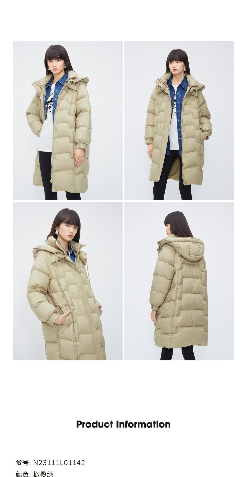 NEELLY纳俪商场同款中长款连帽羽绒服女冬季新款韩版加厚保暖大衣N23111L01142