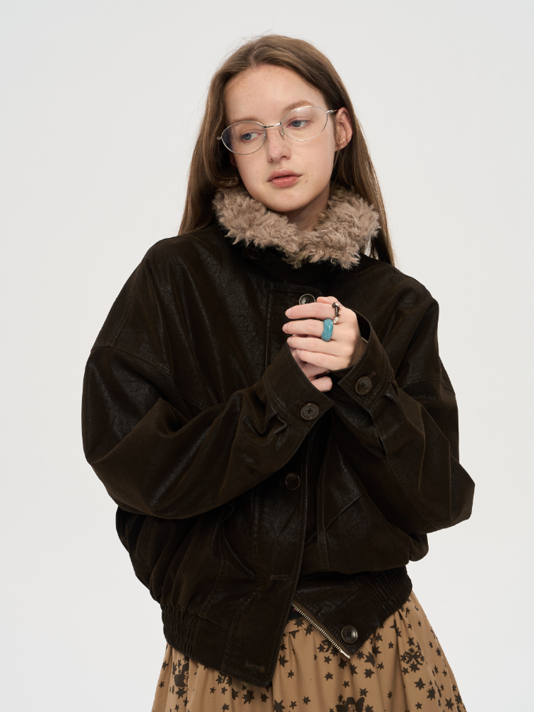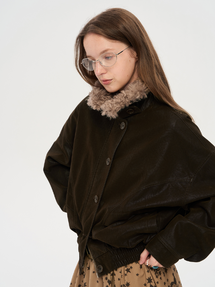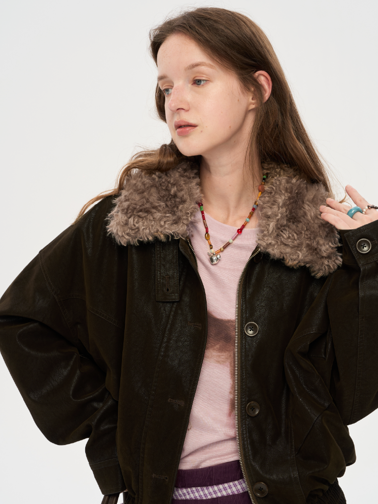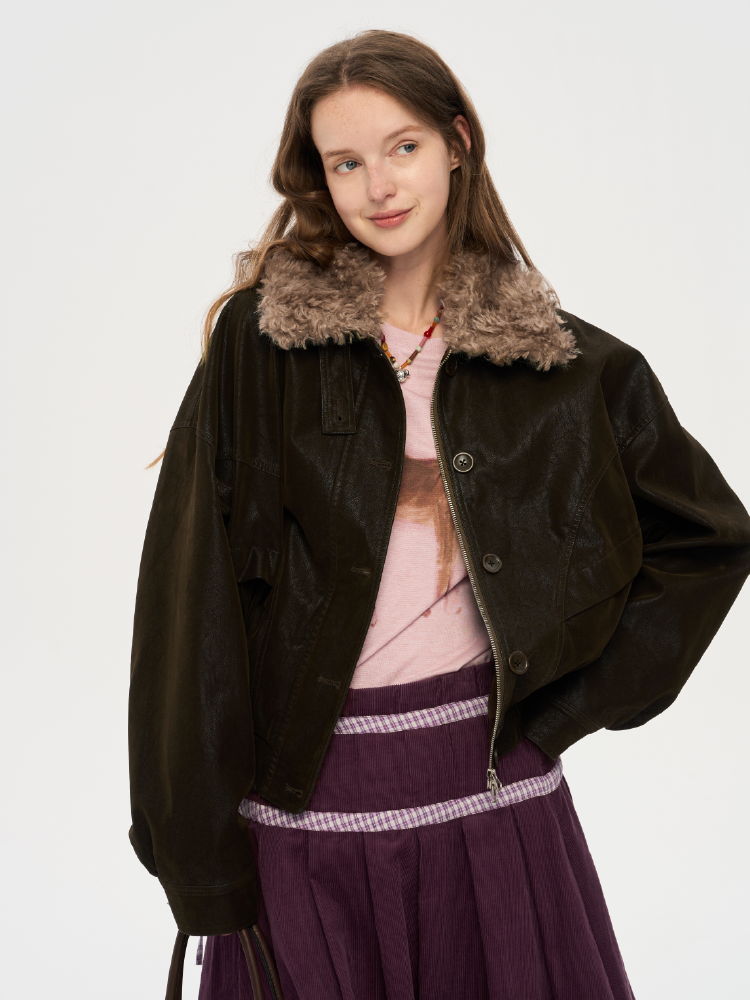 local tag/lt25awk33/可拆卸毛领水洗皮衣