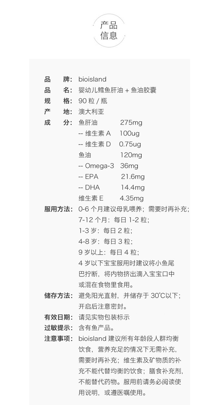【跨境进口】0+ | 澳洲 Bio island佰澳朗德 婴幼儿鳕鱼肝油胶囊 90粒 0+ | 报关后不支持退换货,介意慎拍