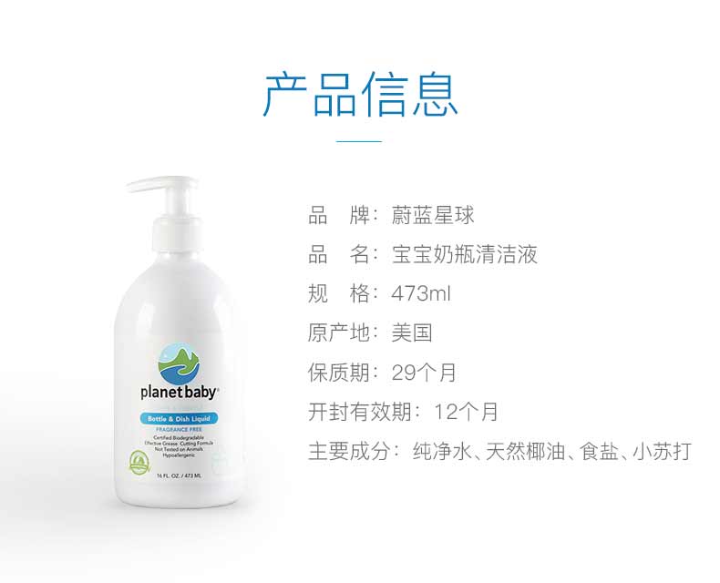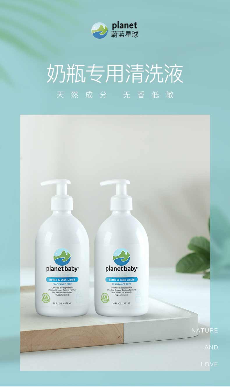美国蔚蓝星球宝宝奶瓶果蔬清洁剂低敏无香安全无刺激