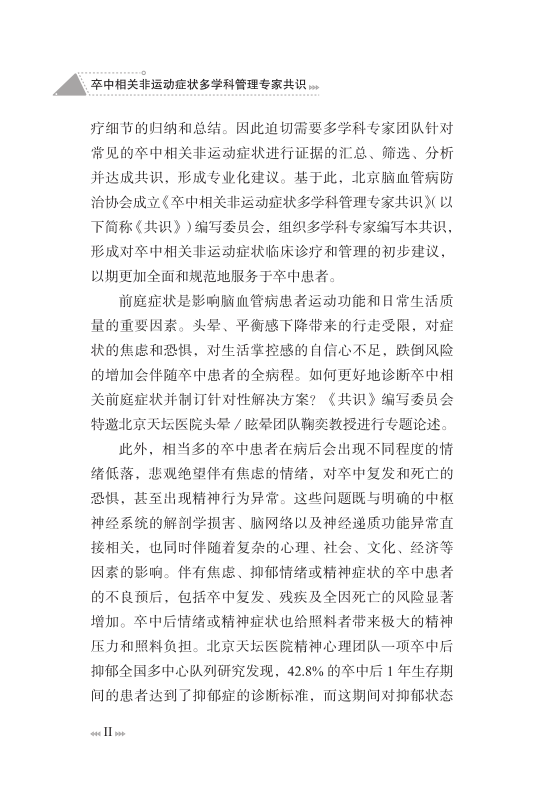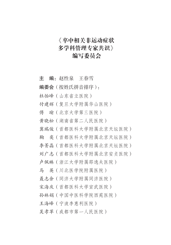 正版 卒中相关非运动症状多学科管理专家共识 赵性泉 王春雪主编