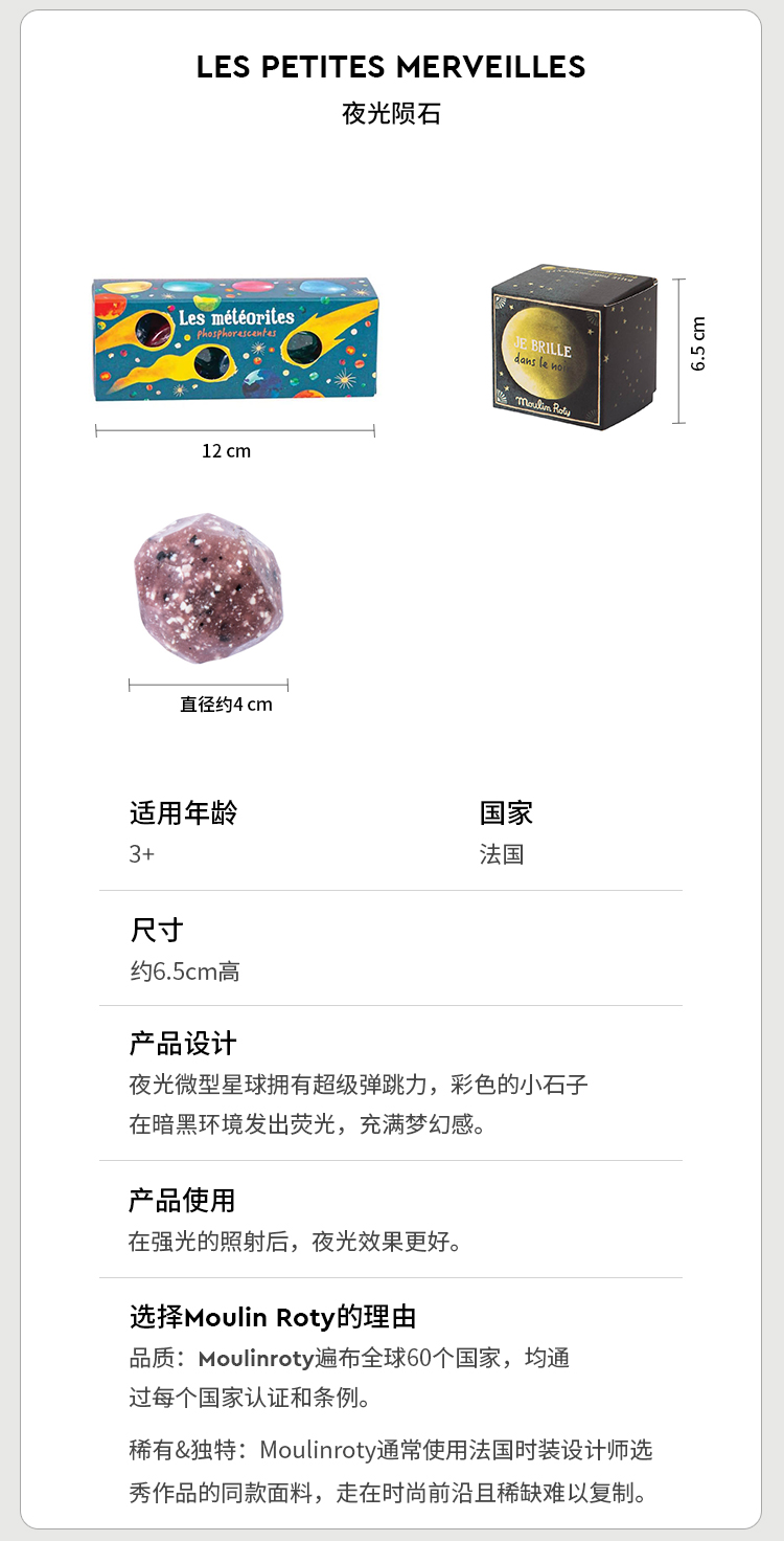 Moulin Roty 发光陨石 弹力珠/弹力球 适合3岁+ 趣味玩具 小小奇迹系列 法国品牌-711384