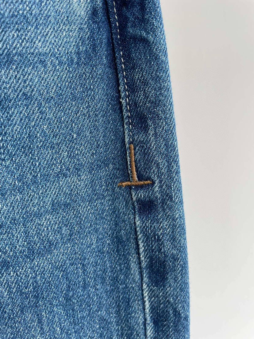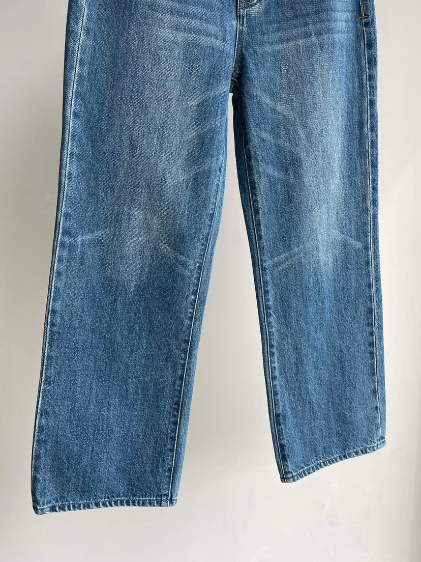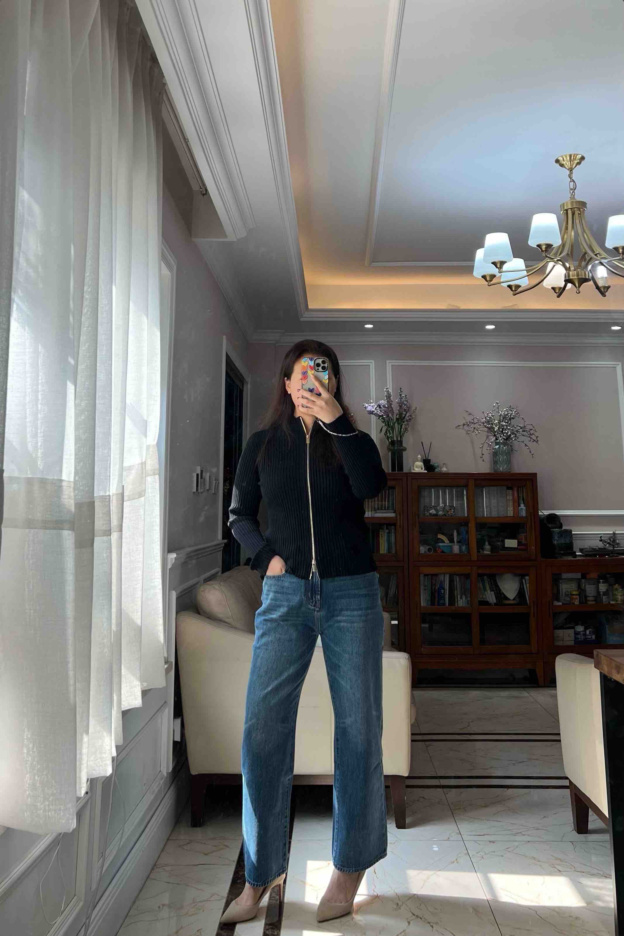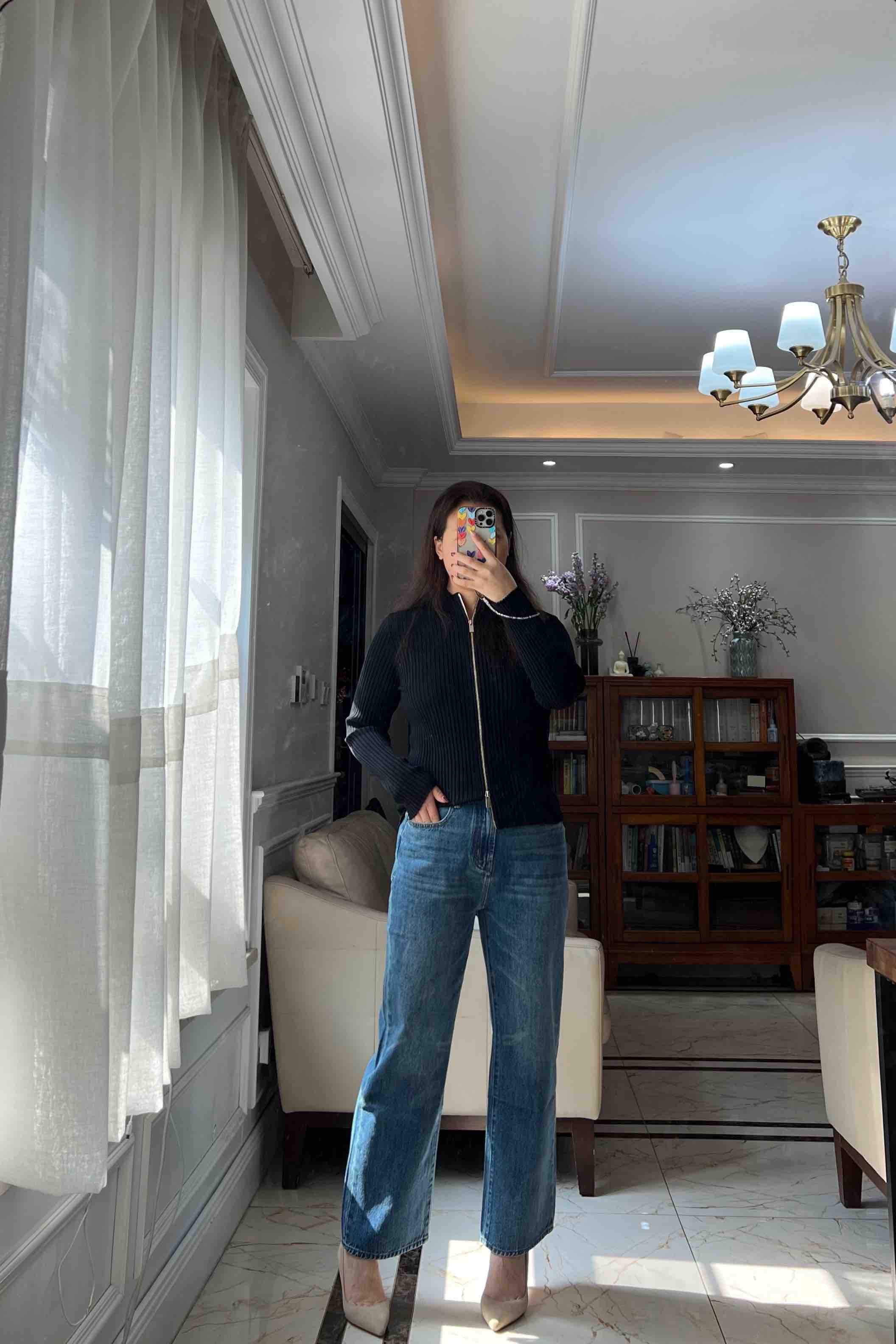 小直筒九分牛仔裤,如果个子小的姑娘,可以卷一下裤脚。恰到好处的丹宁牛仔蓝,深一点则浓,浅一点则淡,这种恰到好处的优雅明媚,让人沉醉。仔细看版型,刺绣,皮牌,金属件,排他性独家圆正,还有谁