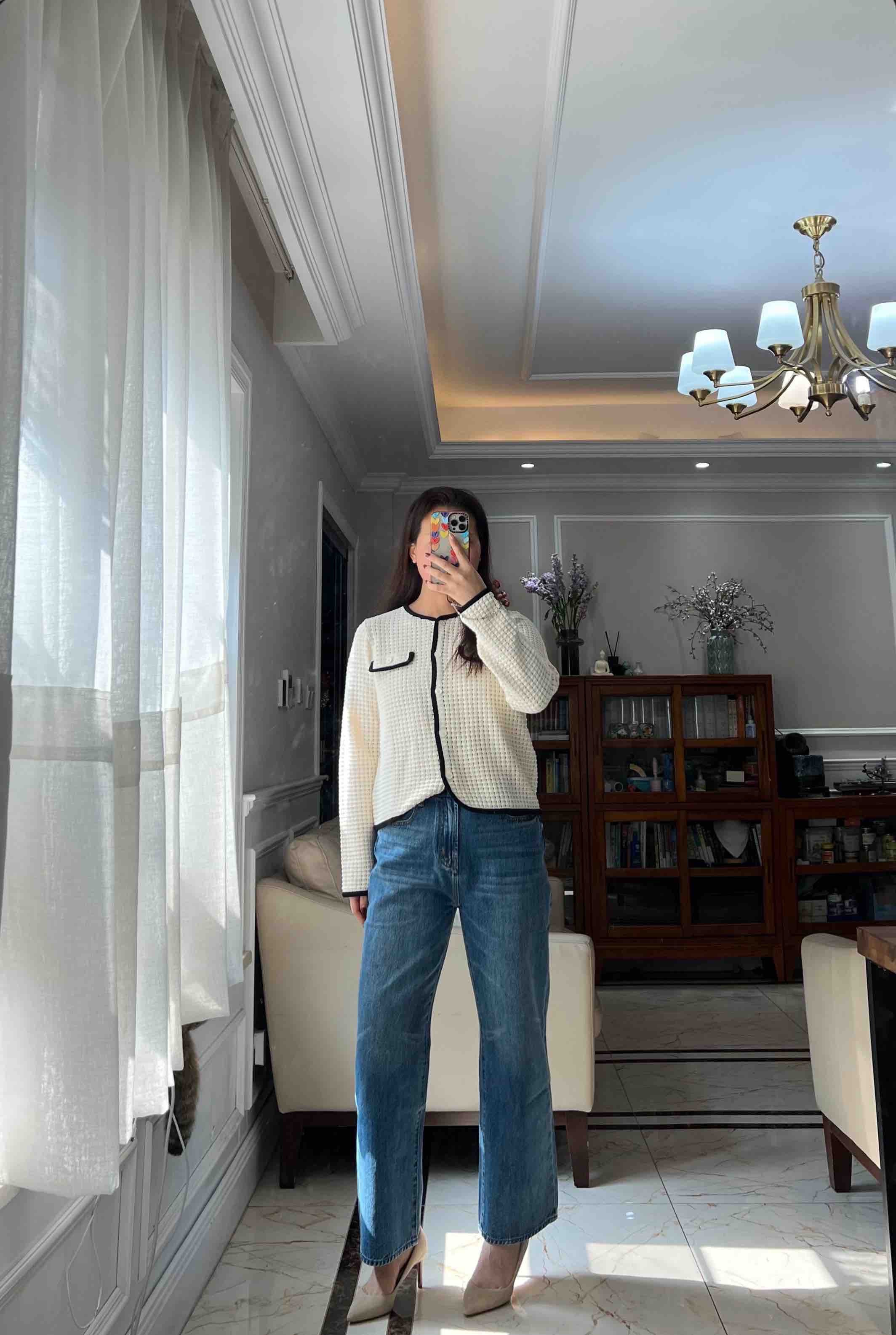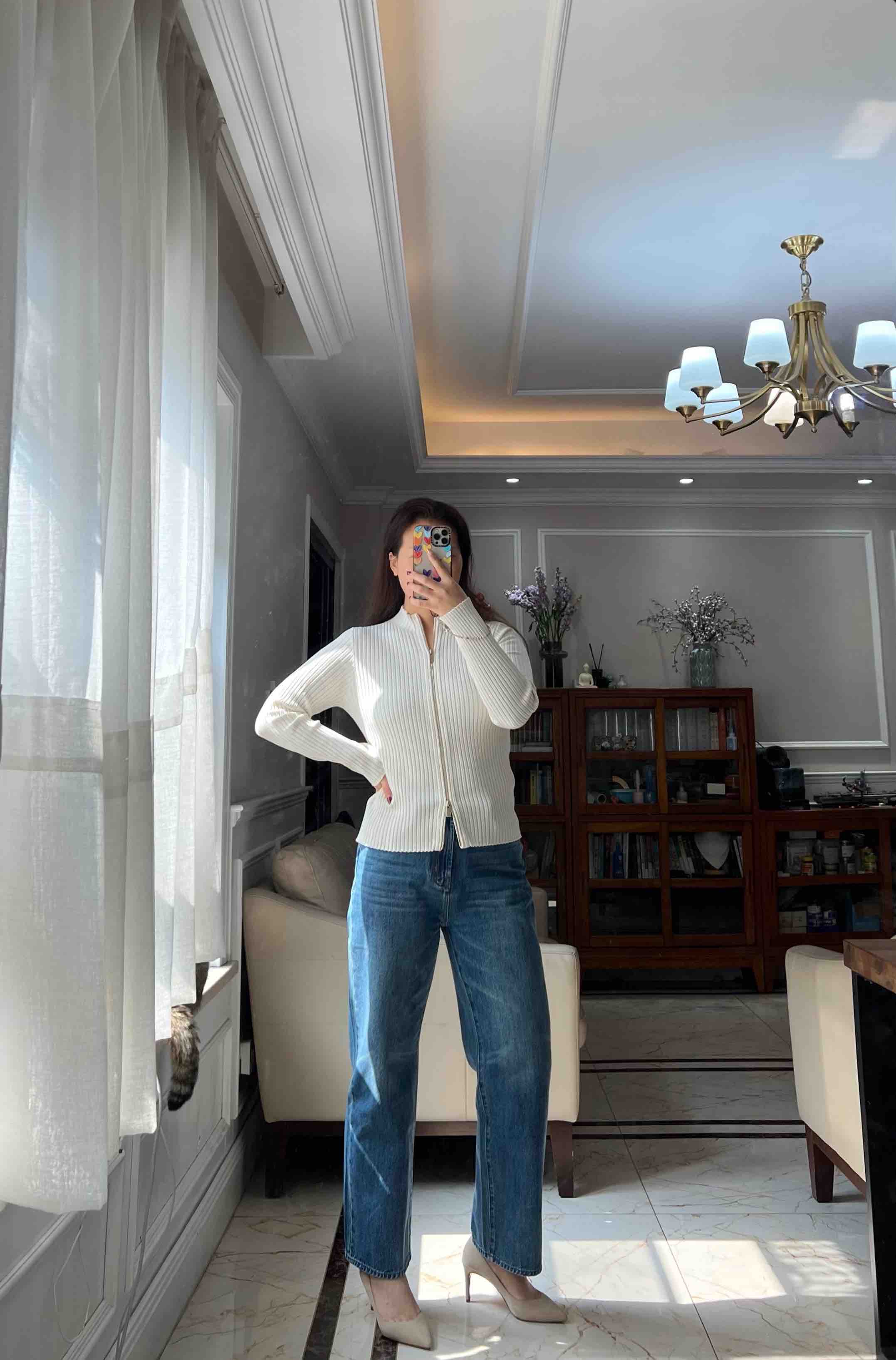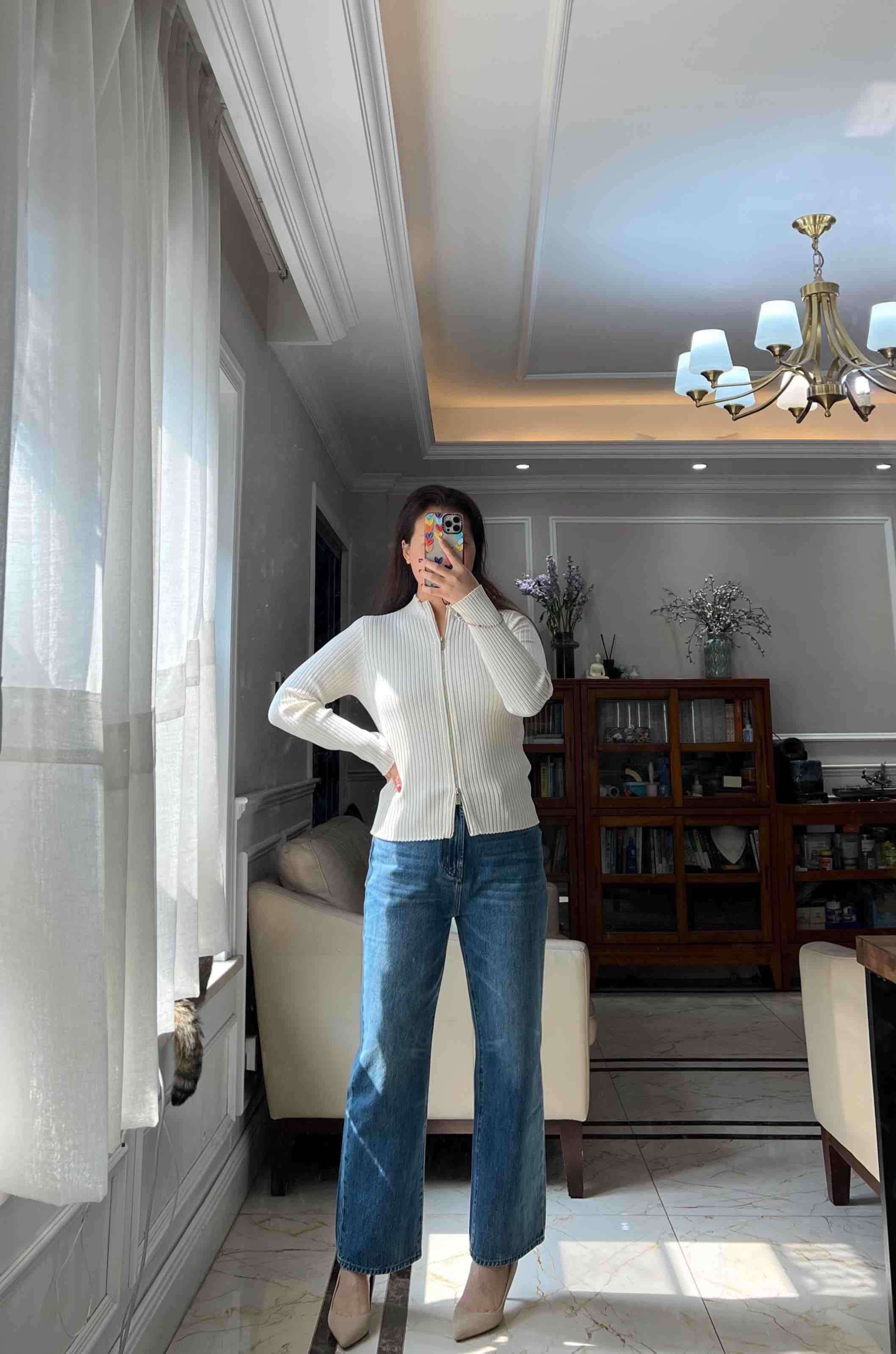小直筒九分牛仔裤,如果个子小的姑娘,可以卷一下裤脚。恰到好处的丹宁牛仔蓝,深一点则浓,浅一点则淡,这种恰到好处的优雅明媚,让人沉醉。仔细看版型,刺绣,皮牌,金属件,排他性独家圆正,还有谁