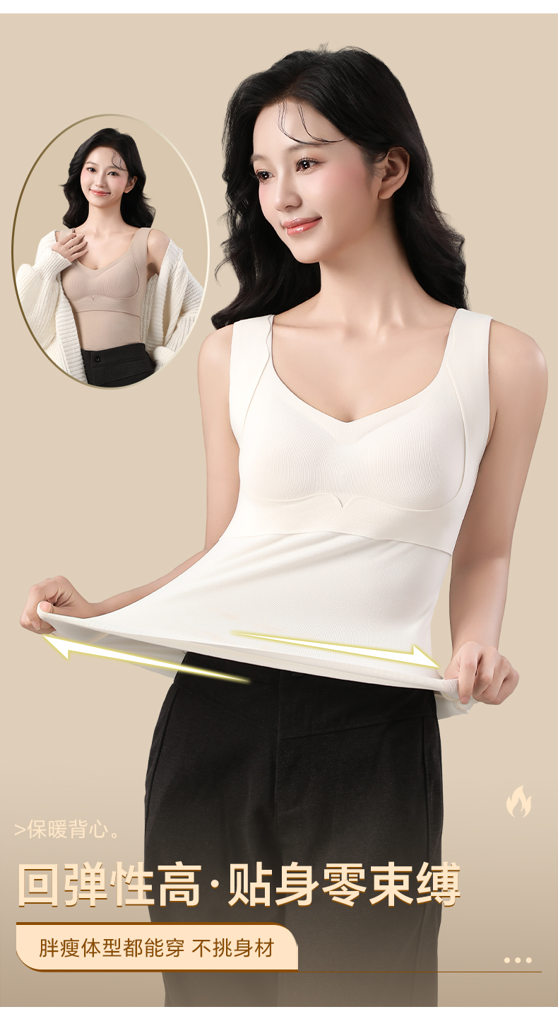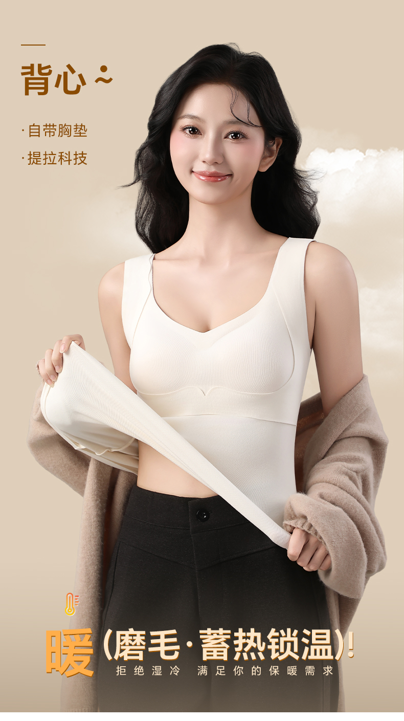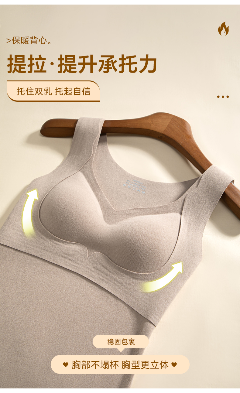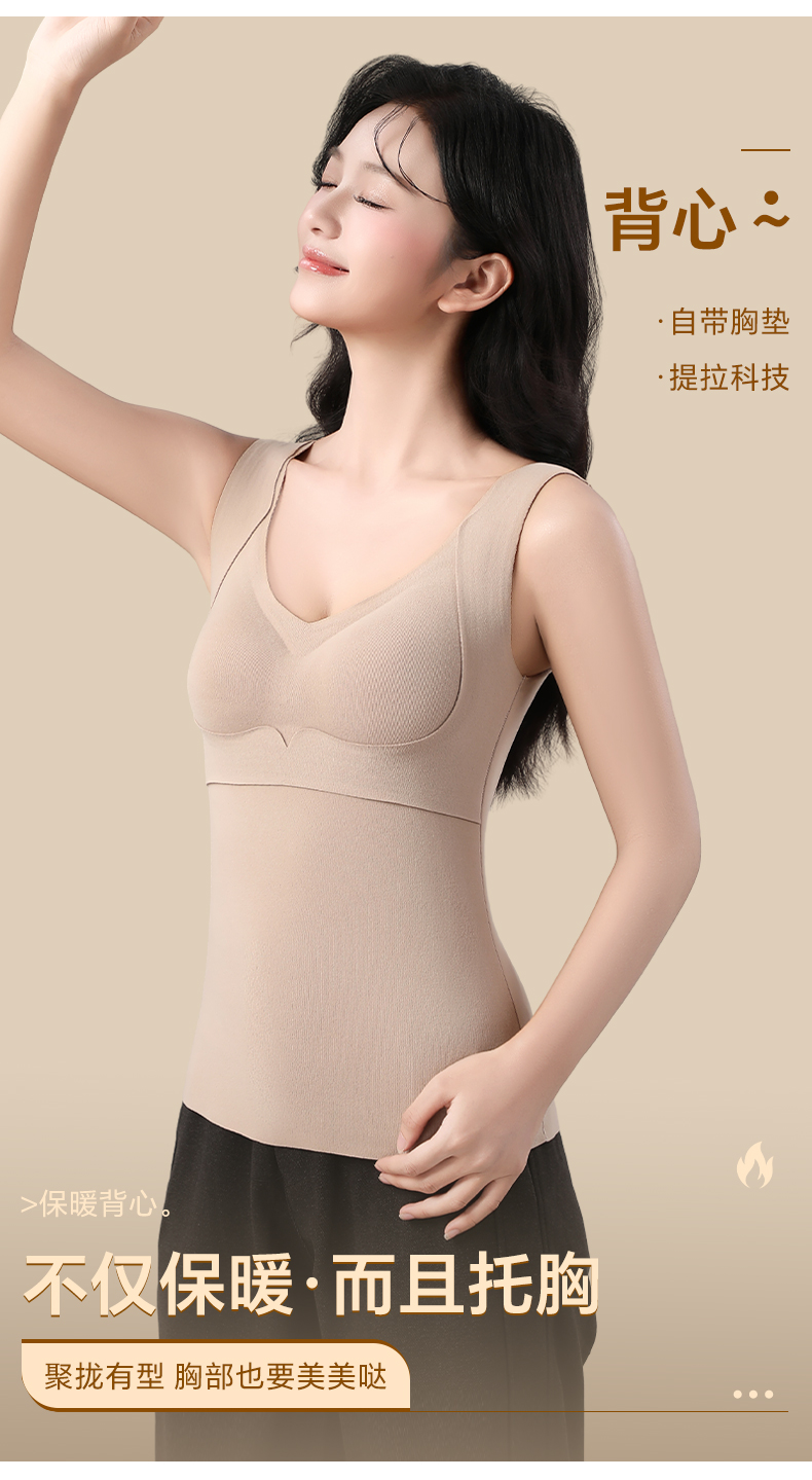 保暖无袖蕾丝无痕双重提拉背心 带胸垫聚拢防下垂舒适背心0219