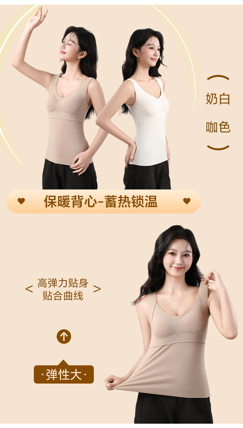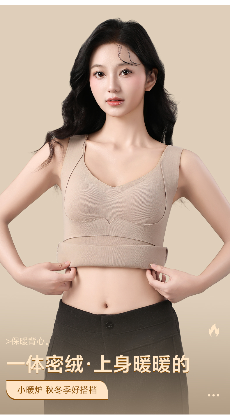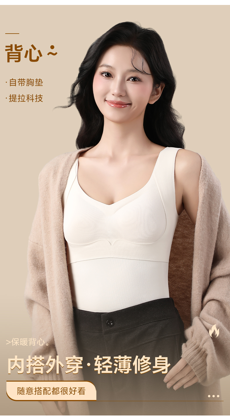 保暖无袖蕾丝无痕双重提拉背心 带胸垫聚拢防下垂舒适背心0219