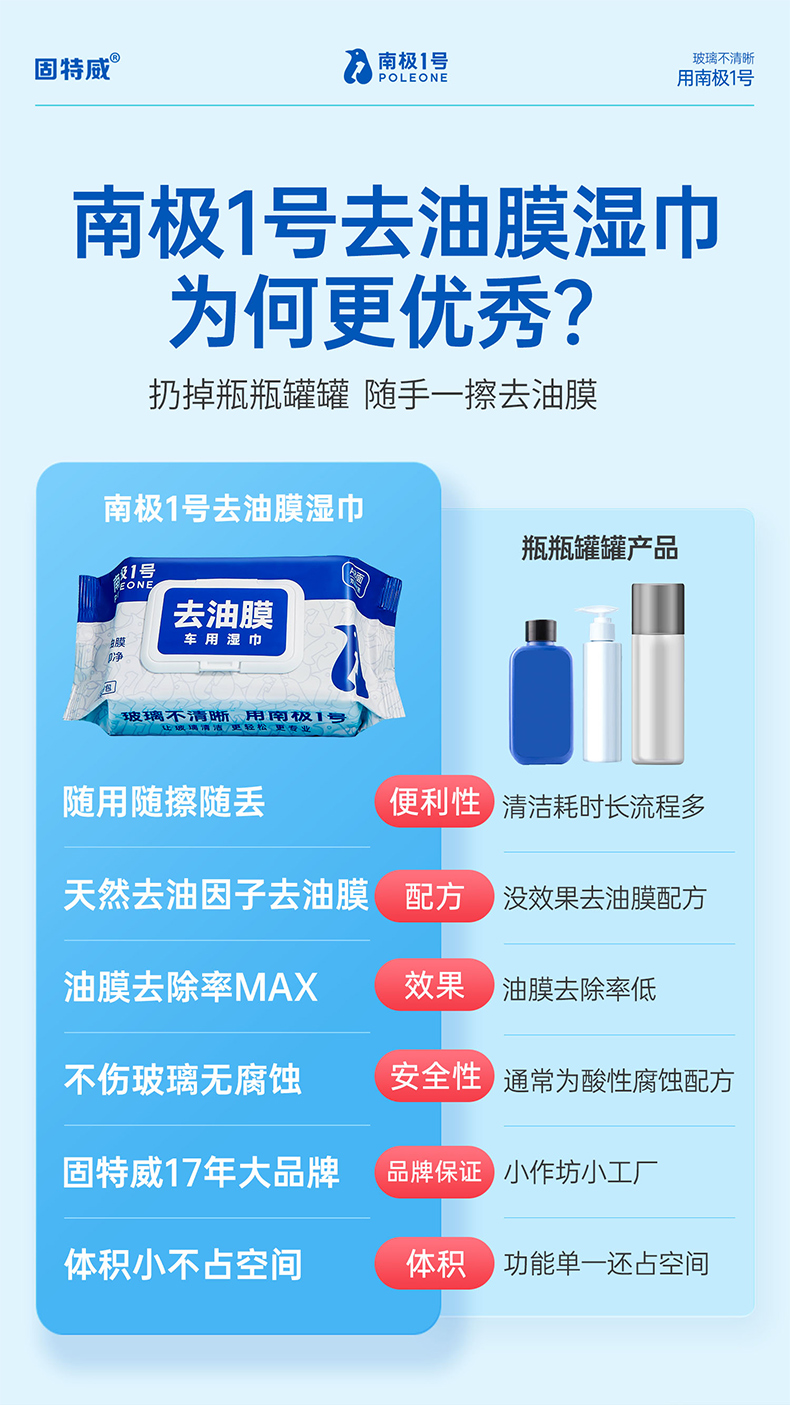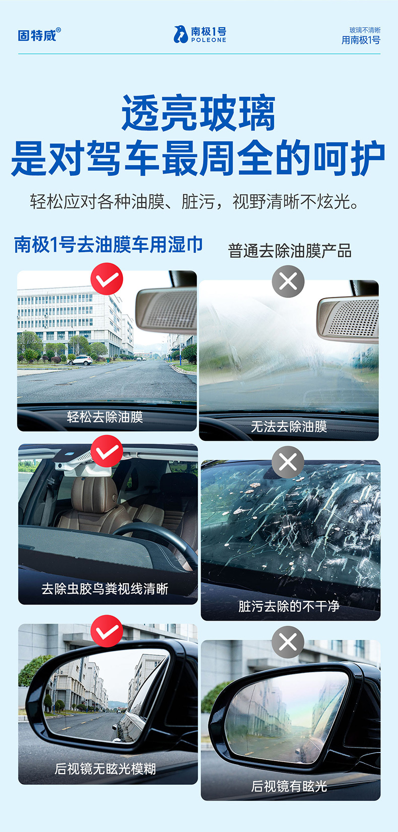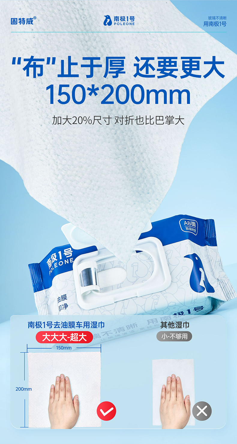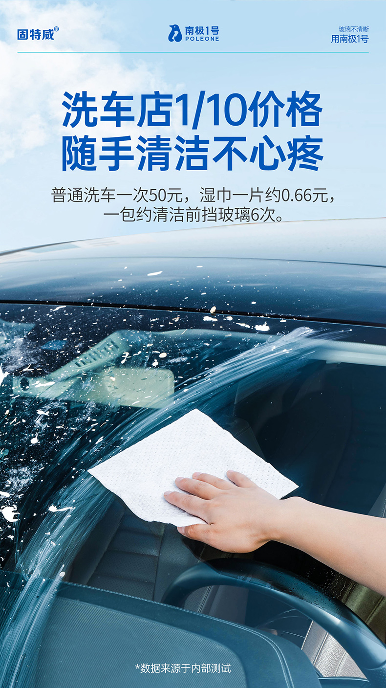 固特威去油膜湿巾玻璃油膜去除剂汽车前挡风玻璃虫胶树胶清洁洗剂