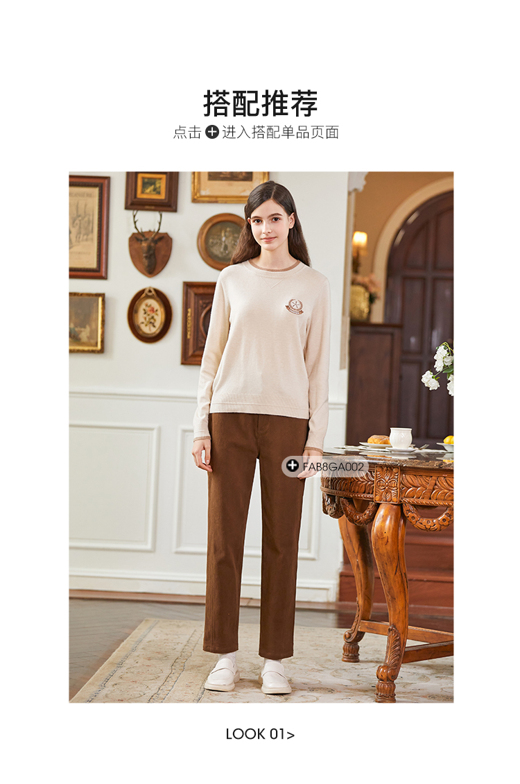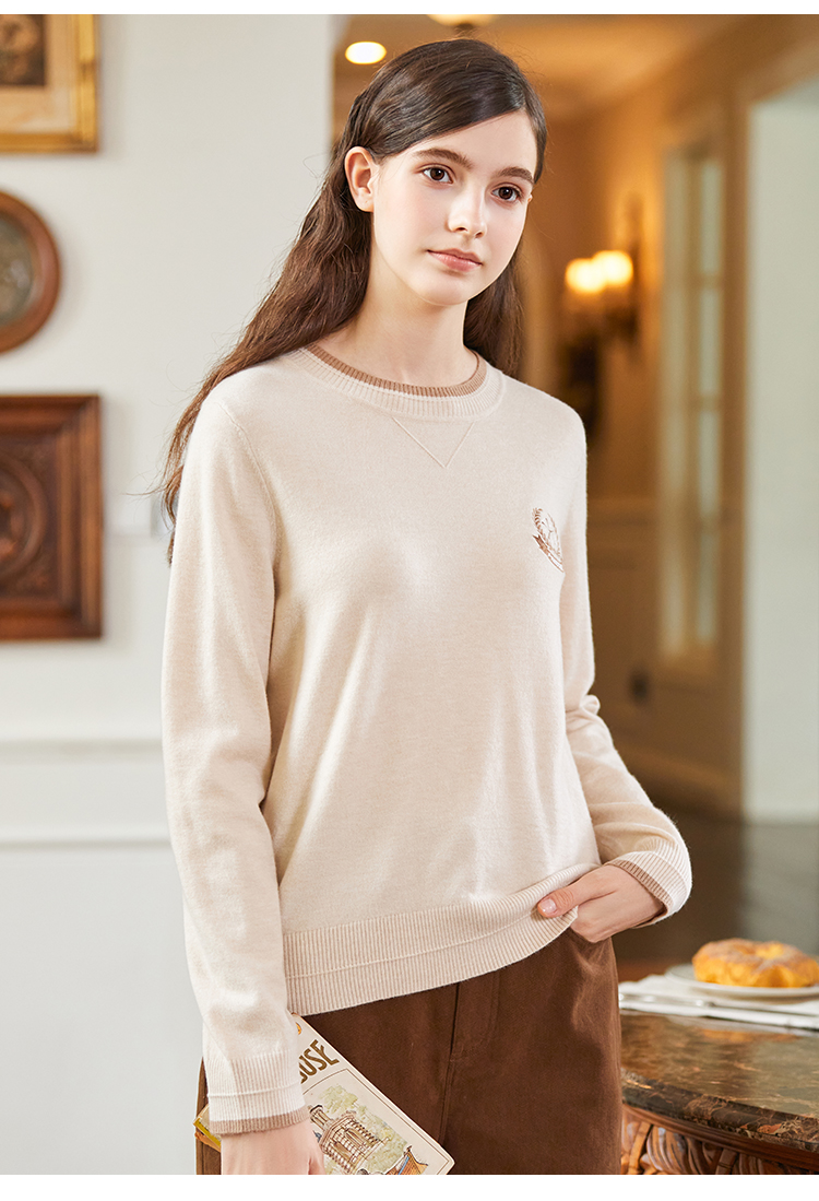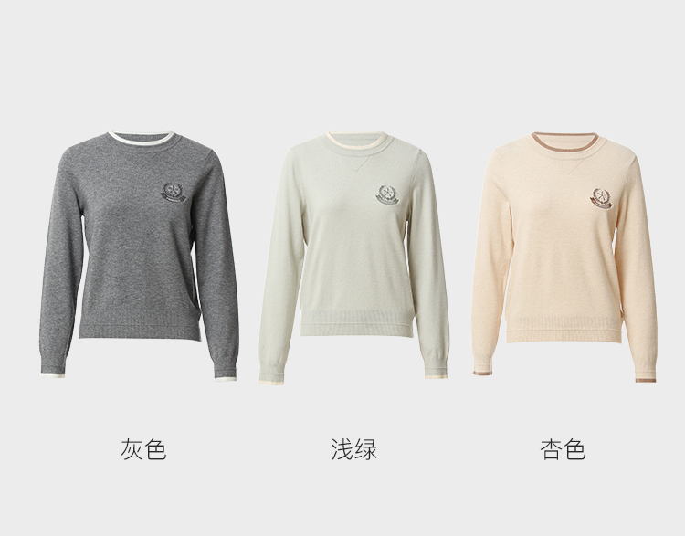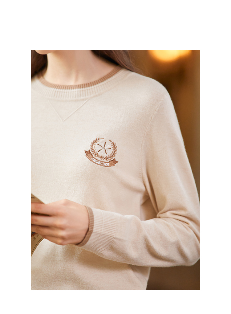 Famecoco范可儿圆领刺绣徽章长袖针织衫冬FAB8DB031
