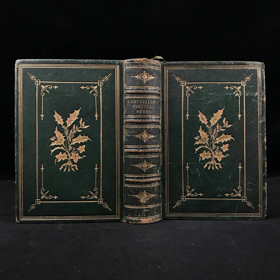 约19世纪后期 朗费罗诗集 约翰·吉尔伯特8幅版画插图 全真皮精装 四层竹节背 环衬烫金压花 书口三面鎏金
