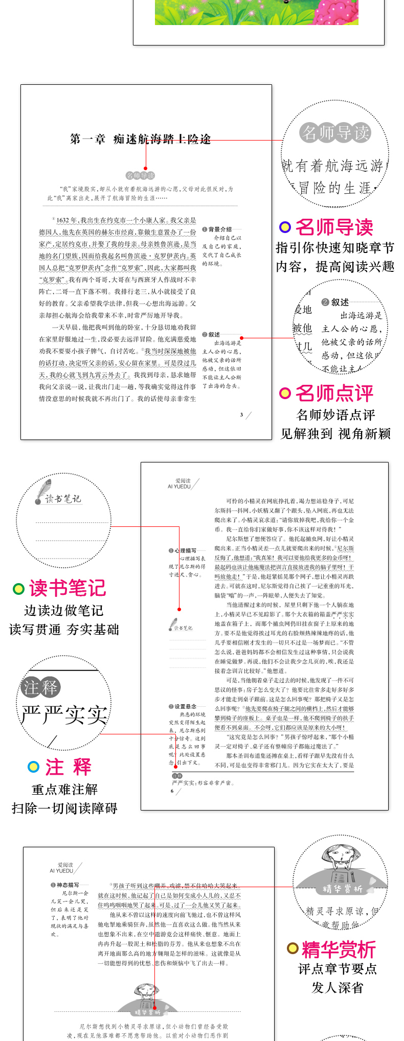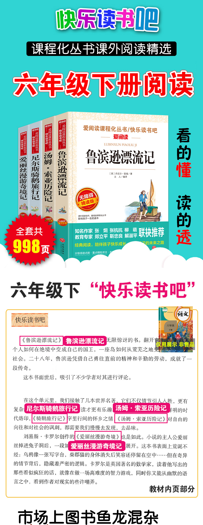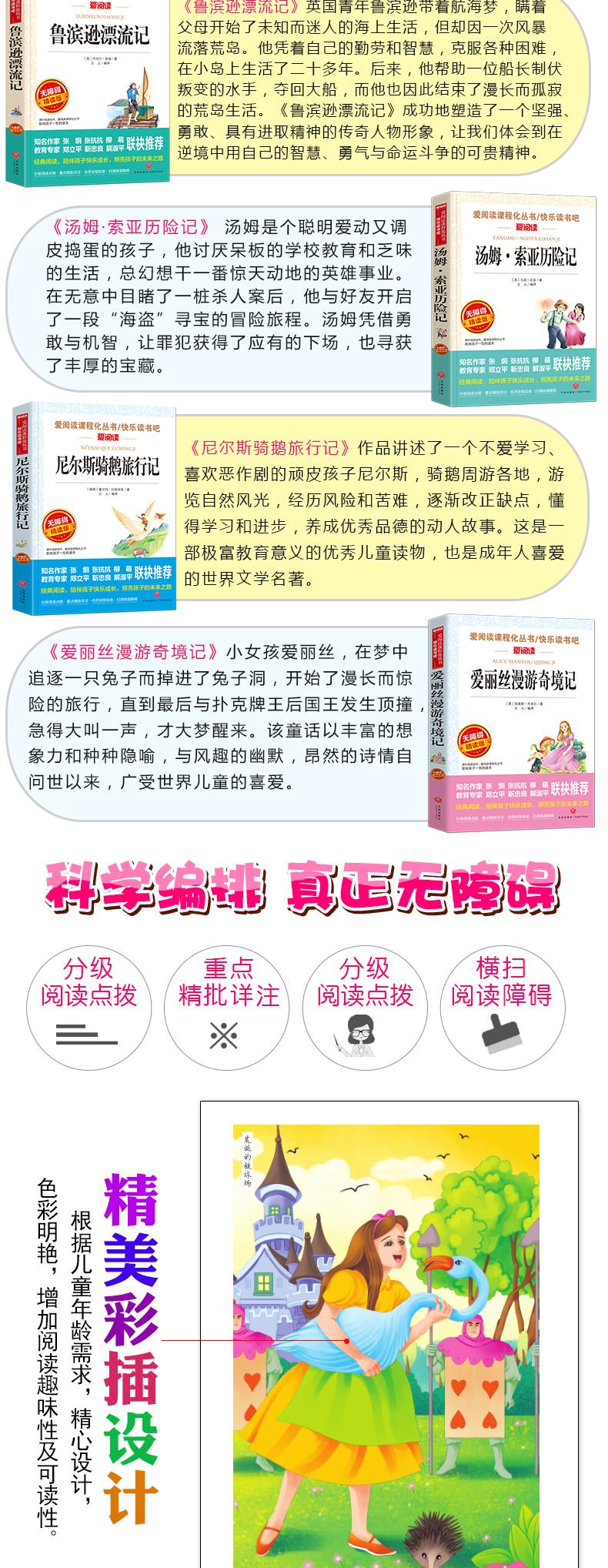 爱阅读 快乐读书吧全4册任选 六年级下鲁冰逊漂流记汤姆索亚历险记尼尔斯爱丽丝 无障碍阅读导读版 6年级初中生课外书籍青少年版