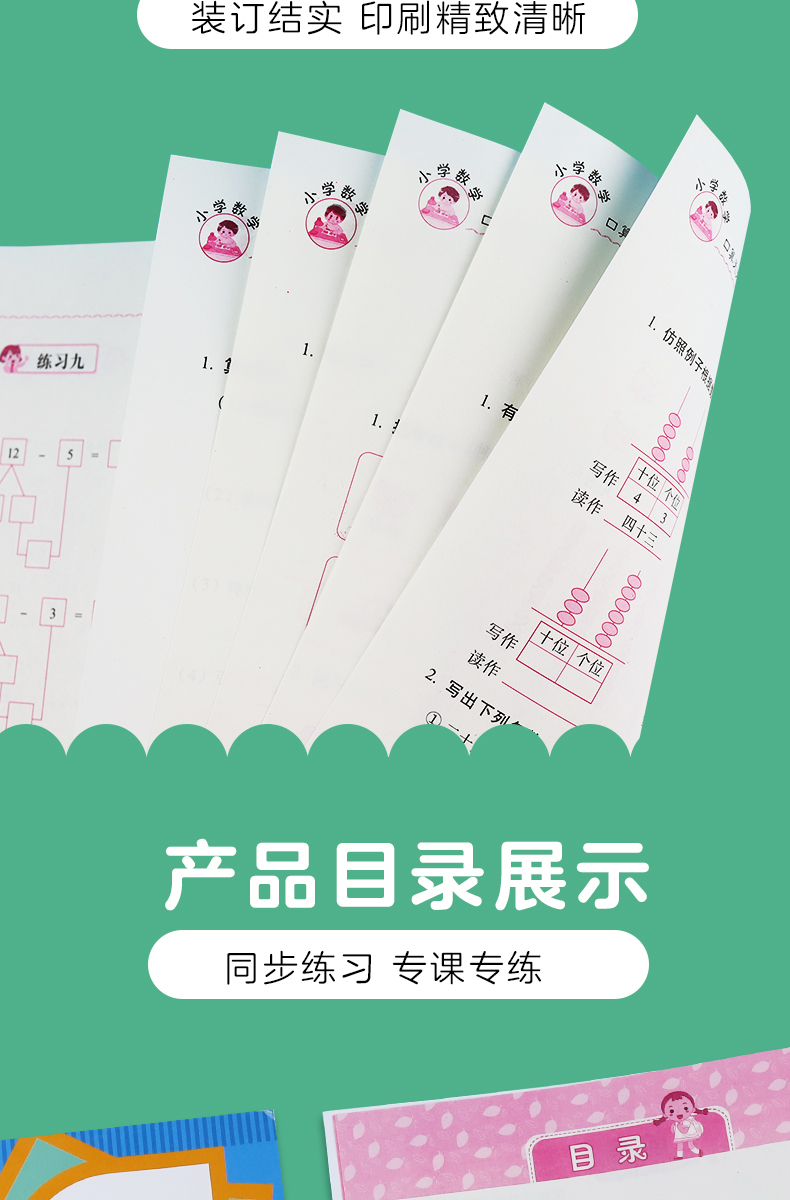 小学数学口算天天练一年级二年级三四五六年级上册下册同步教材人教版每日一练思维训练大通关100以内加减法心算速算口算题卡
