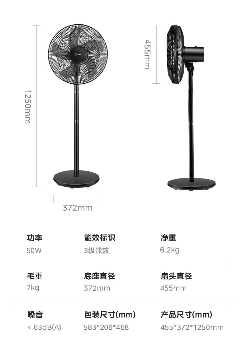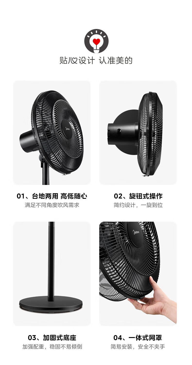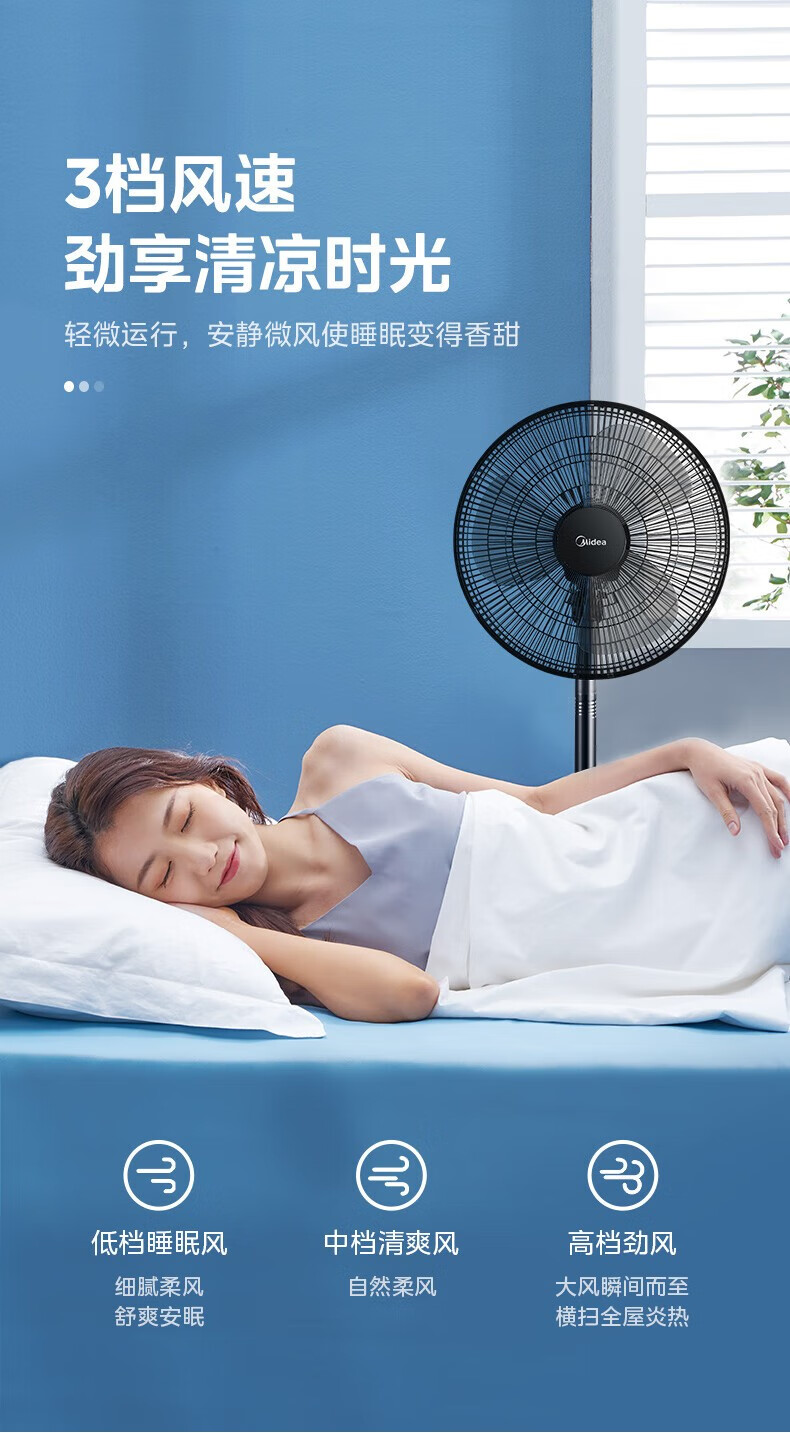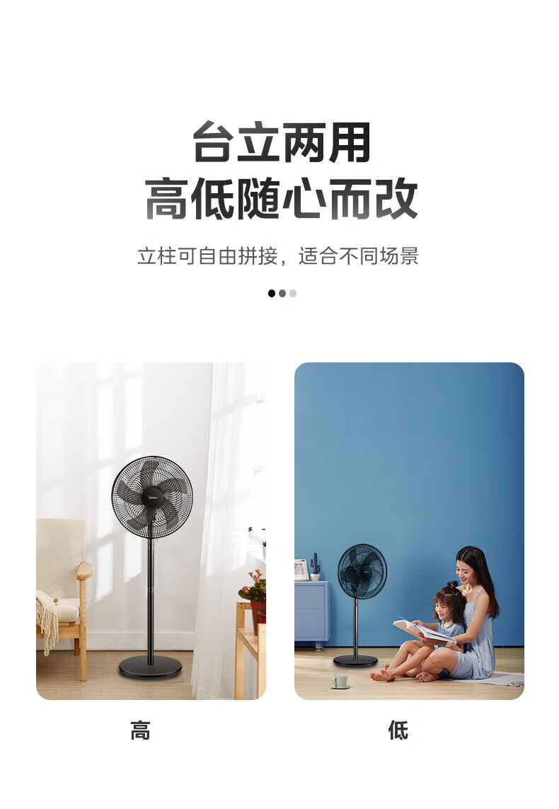 美的 落地电风扇 机械台立两用 5叶强风 轻音3档 可调400mm 白色(FSA40UE)