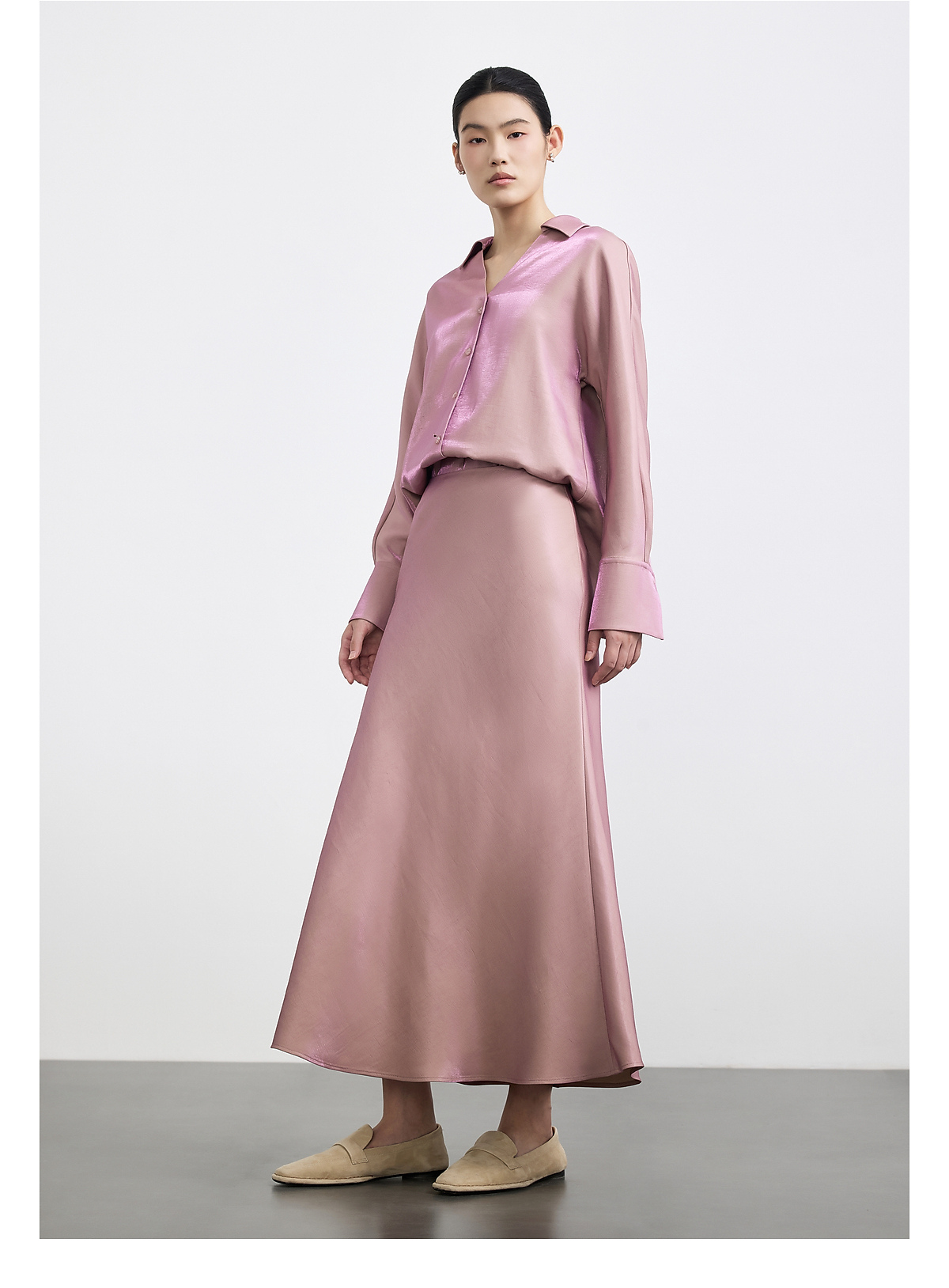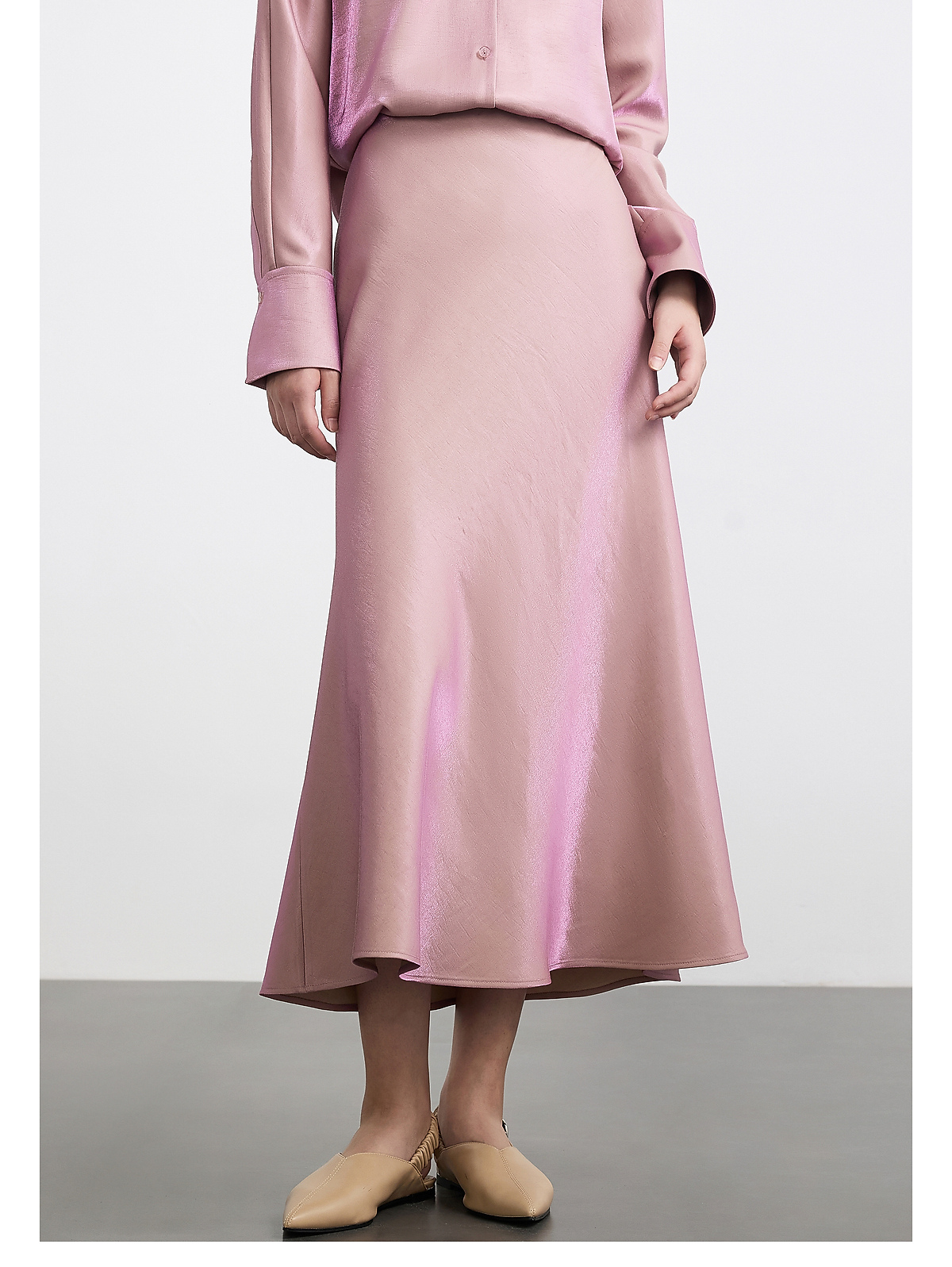 PURE TOUCH女装 25秋冬新款缎面珠光感鱼尾半裙中长款a字过膝长裙