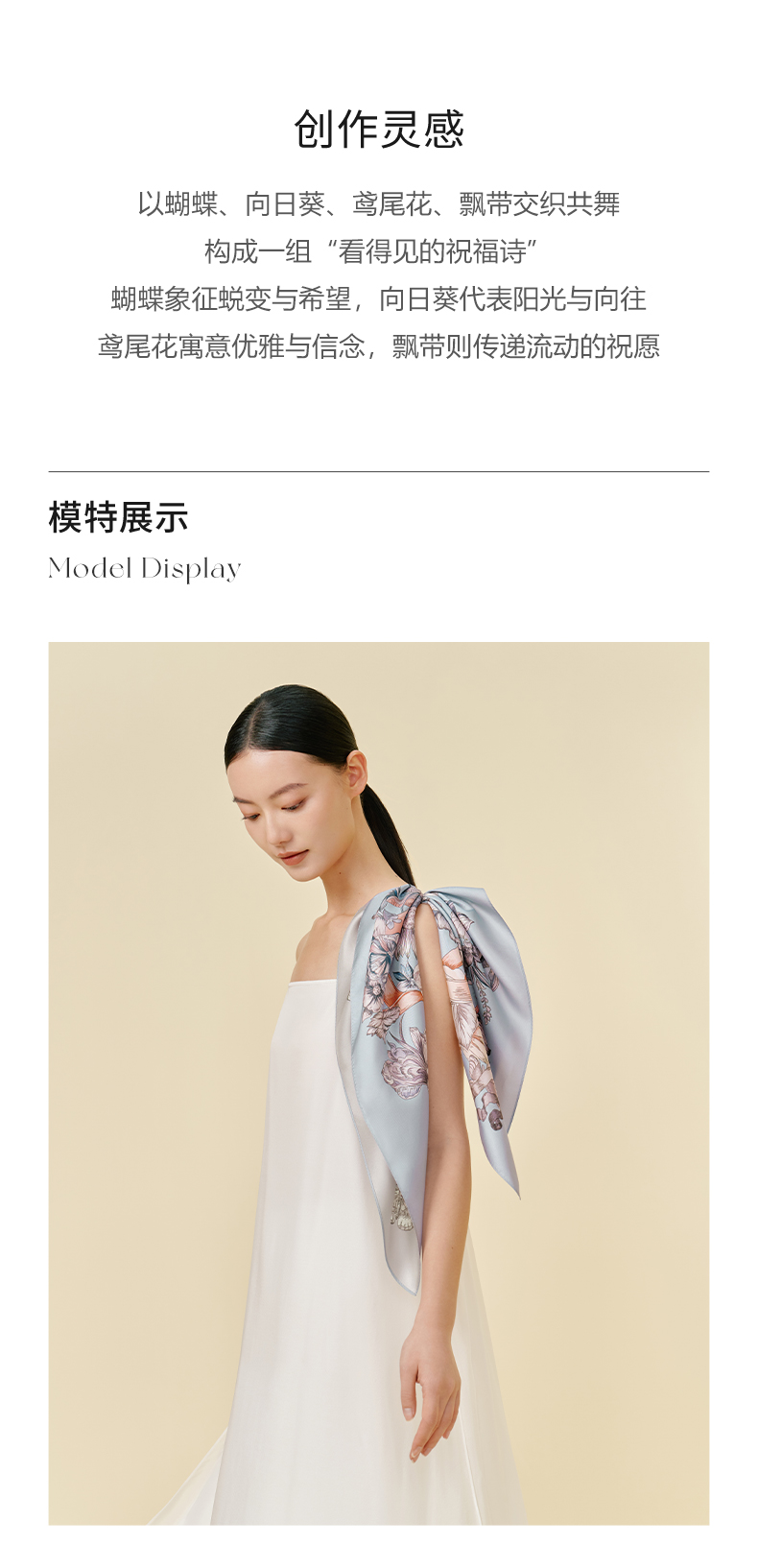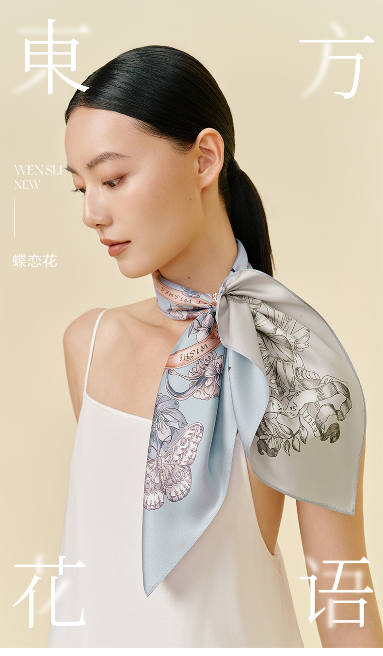 万事利“玉兰赋”63厘米双面印花真丝中方巾