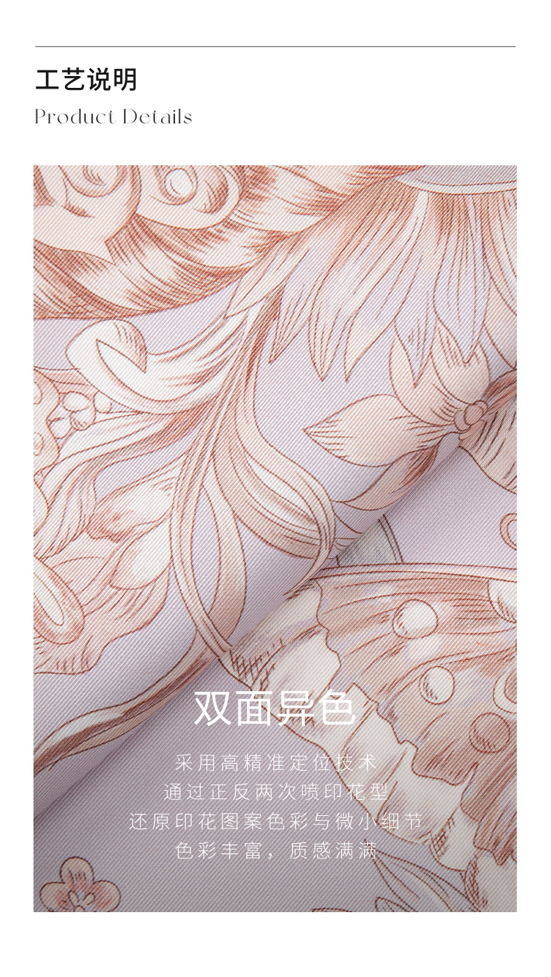 万事利“四时景”88厘米双面印花真丝大方巾