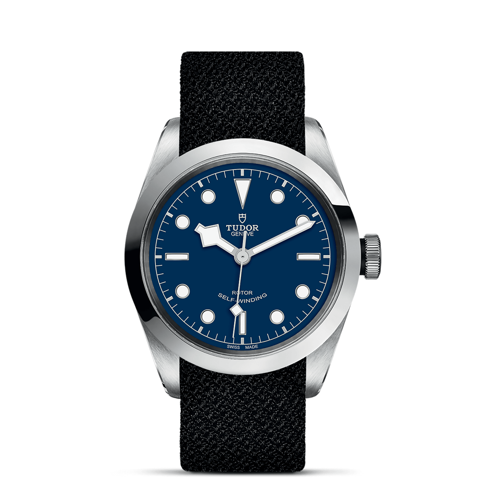 不锈钢旋入式上链表冠,饰以浮雕帝舵表玫瑰标志,配黑色阳极氧化铝上链表冠轴