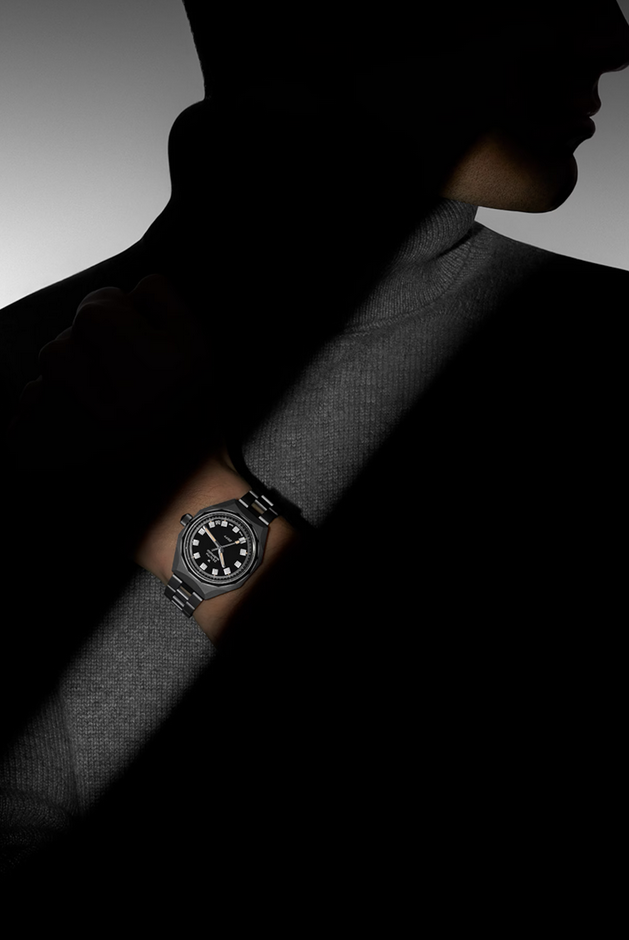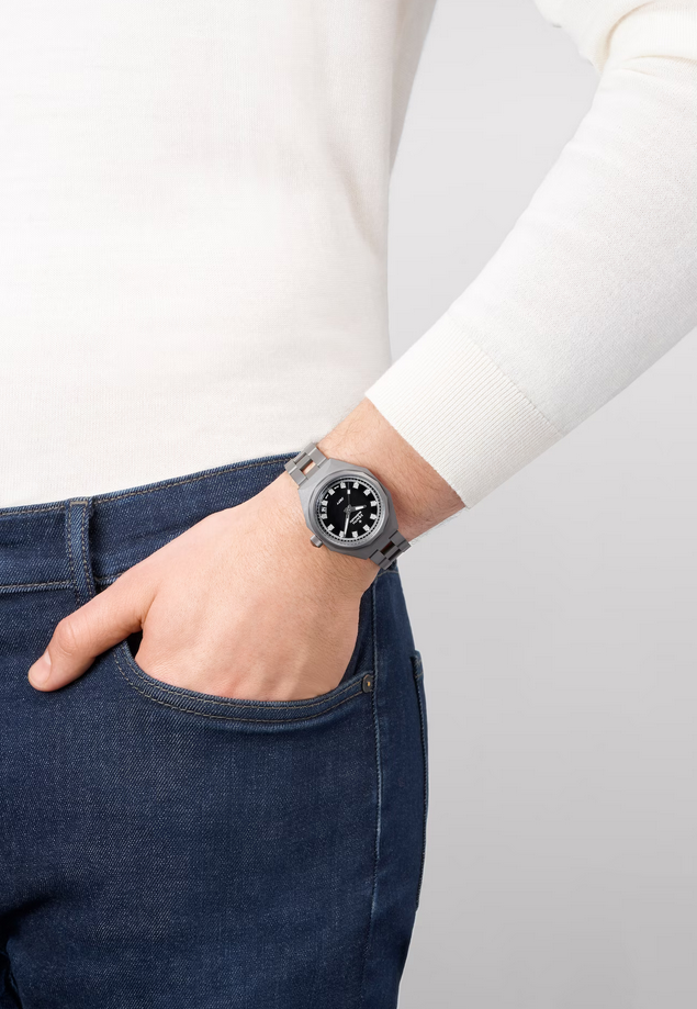 镜面 材质 | 蓝宝石水晶玻璃 | 表盘 | 坚固的八边形哑光饰面钛金属表壳和十四边形表圈 哑光黑色表盘; 日期显示 背透 |