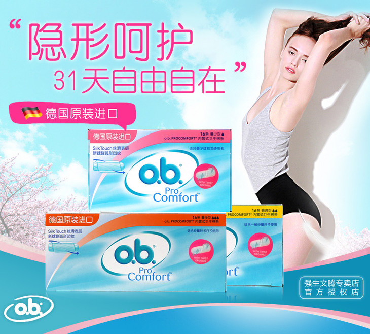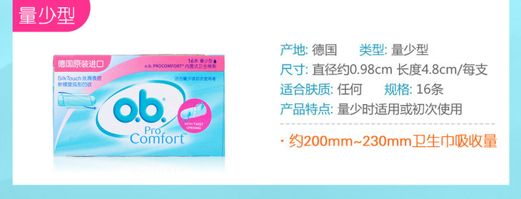 【卫生棉条】OB卫生棉条量少/普通/量多型16条德国进口内置棉条