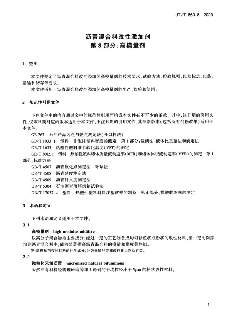 沥青混合料改性添加剂 第8部分:高模量剂(JT/T 860.8—2023)