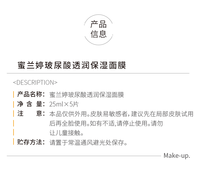 蜜兰婷玻尿酸透润保湿面膜25ml*5片 250462