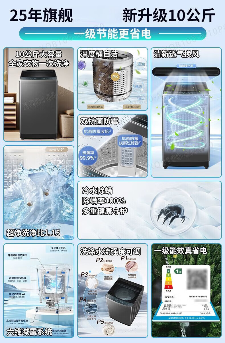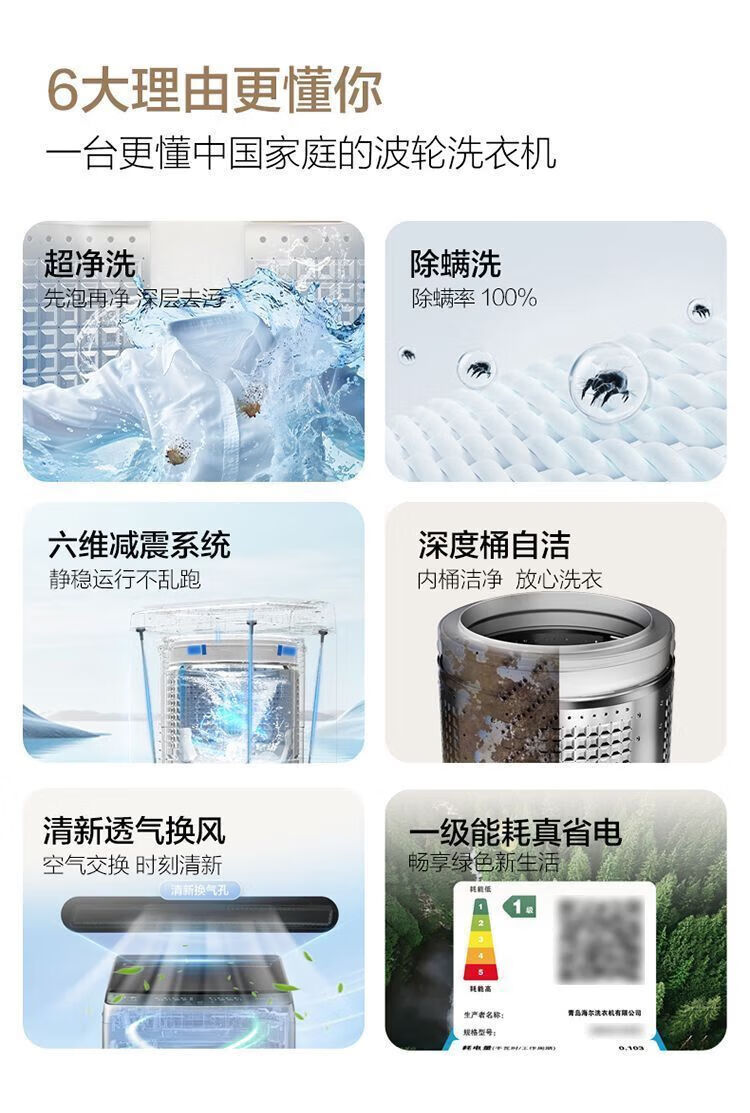 海尔波轮洗衣机全自动 10kg大容量家用一级能效六维减震超净洗 XQB100-M10P0 波轮