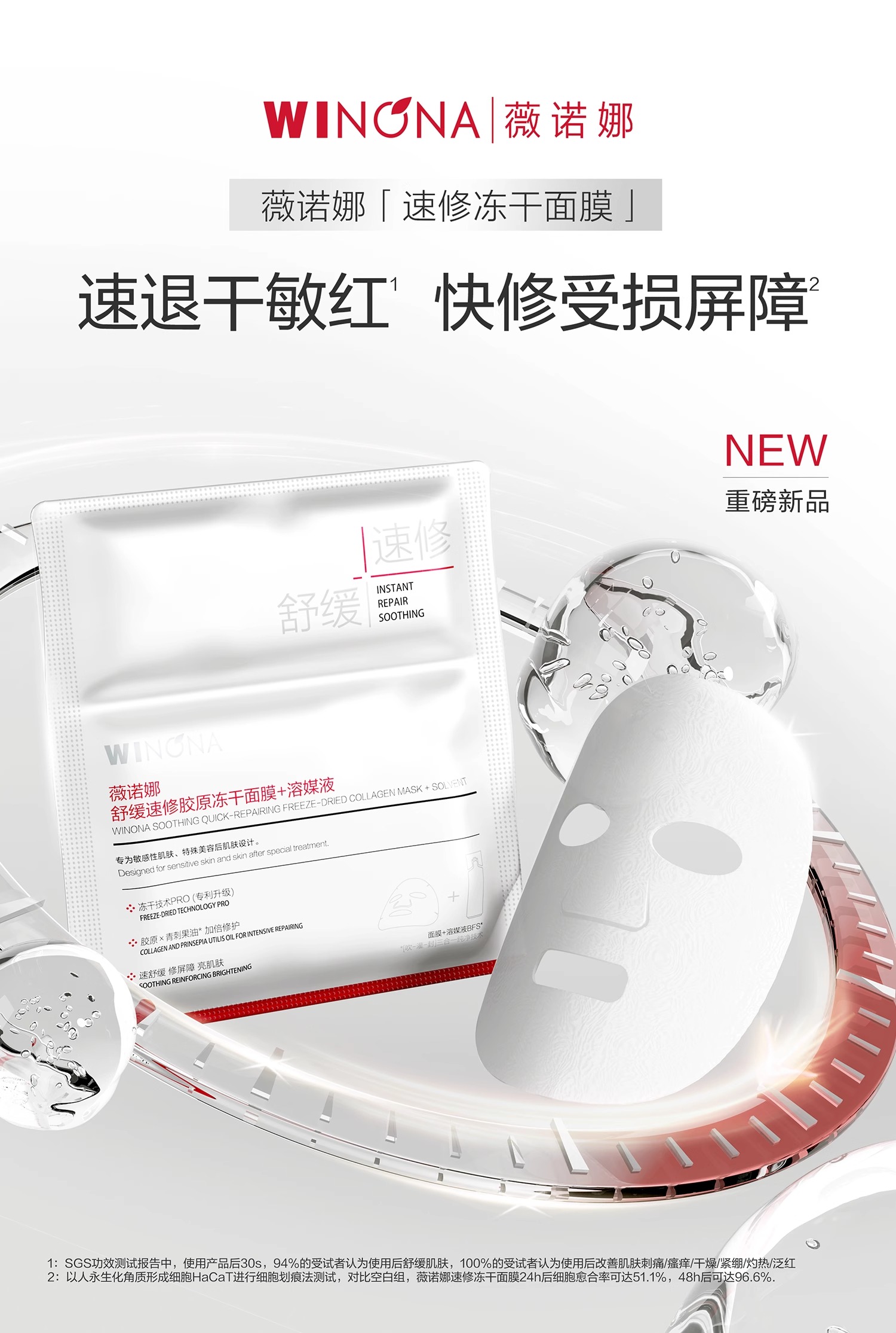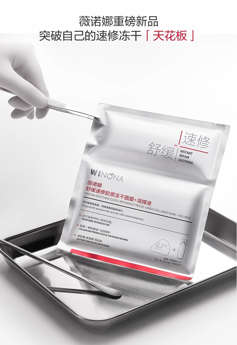 薇诺娜舒缓速修胶原冻干面膜+溶媒液(650mg+20ml)*6片/盒(速修冻干面膜)