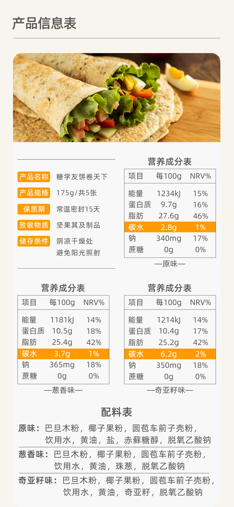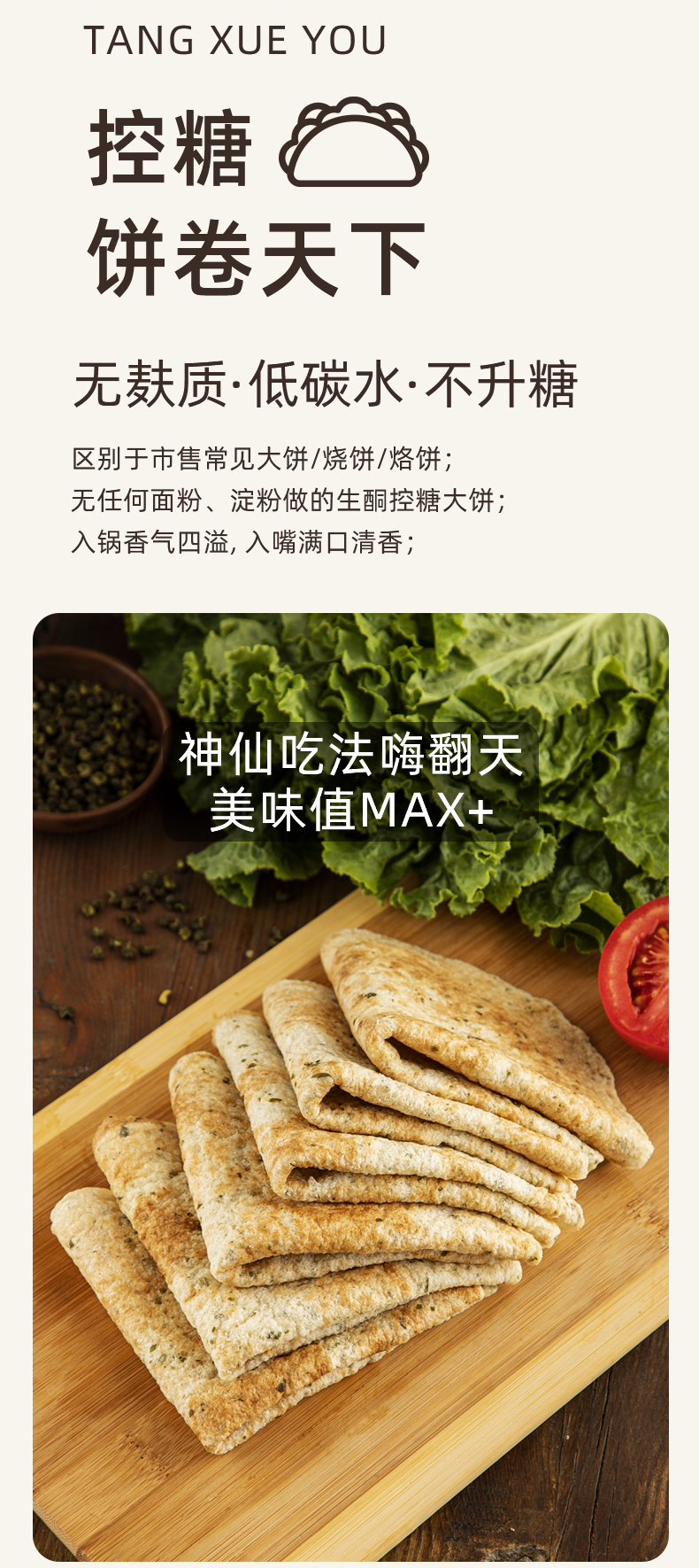 生酮低碳水食品无面粉无糖精奇亚籽卷饼零食糖尿人专用无麸质主食