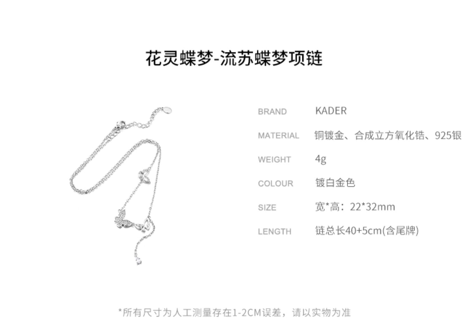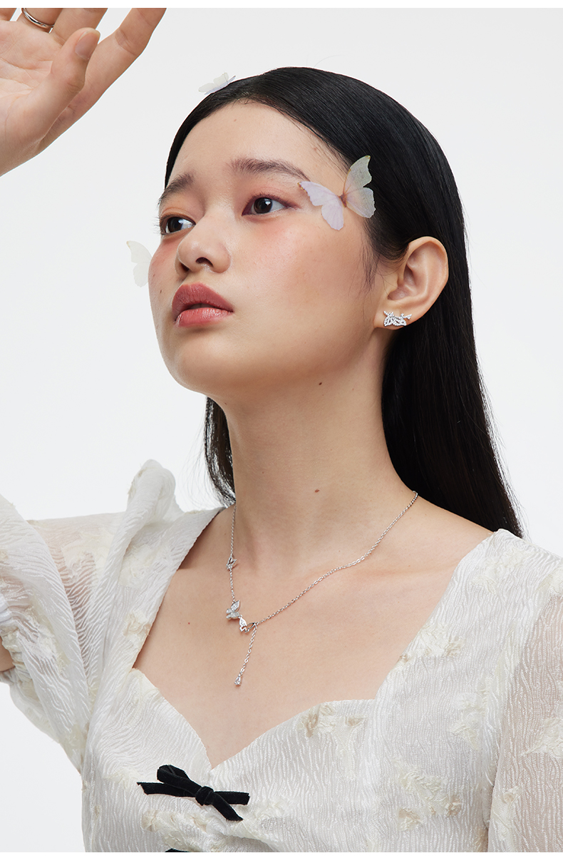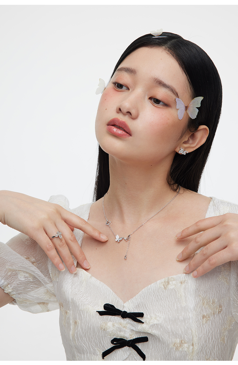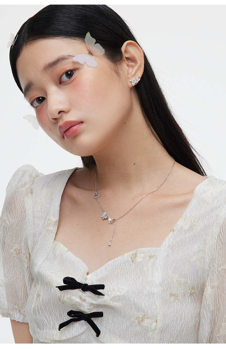 【孔雪儿同款】卡蒂罗流苏蝴蝶项链女纯银夏季轻奢锁骨链小众设计