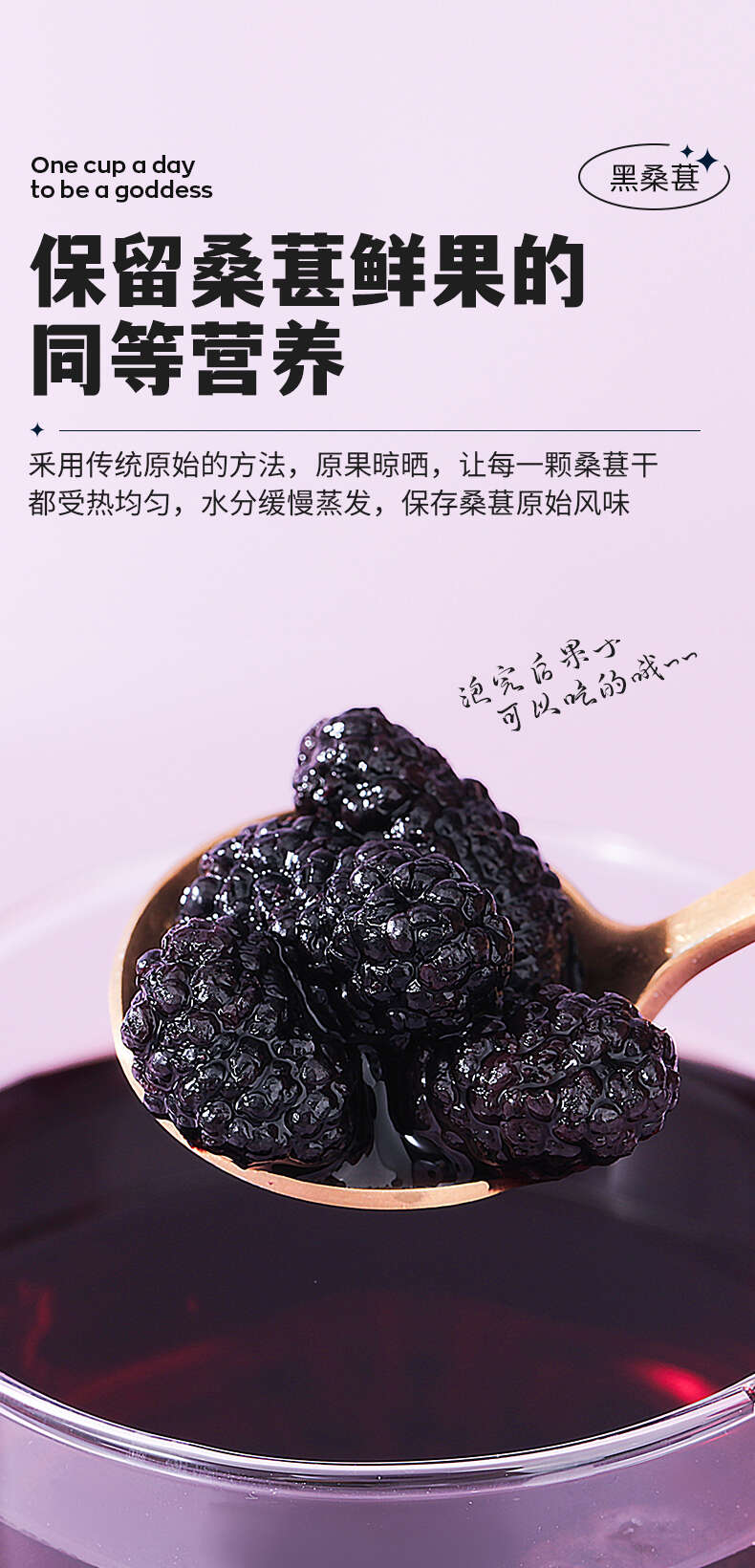 方法:桑葚5-6颗 冰糖 可根据自己喜好添加,直接用沸水冲泡即可