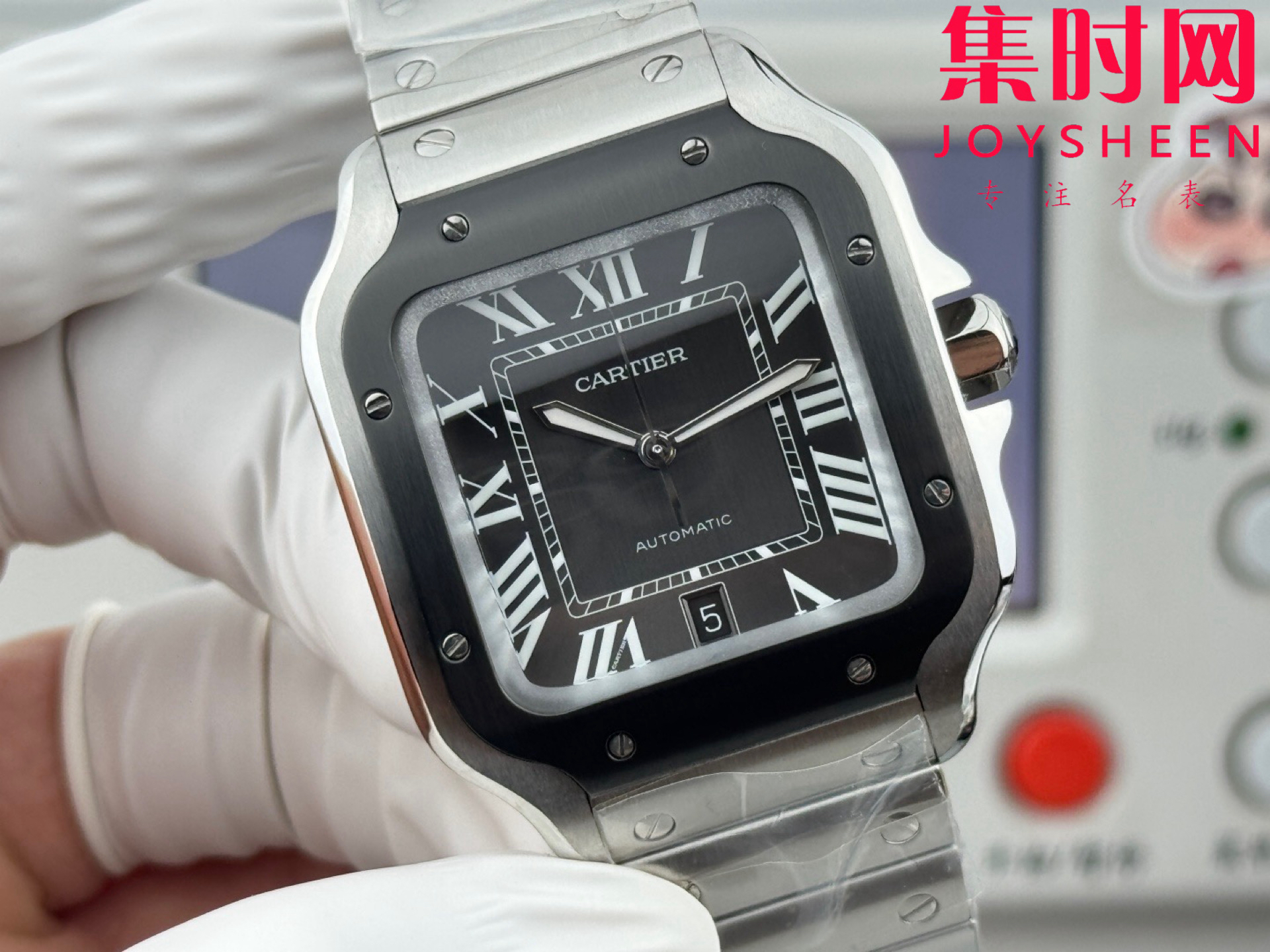 GF卡地亚山度士系列 山度士大号 钢带款 间黑方形男士腕表 绝对是绕不开的经典 表径39.8mm