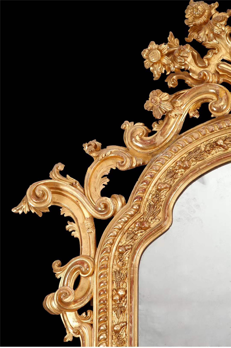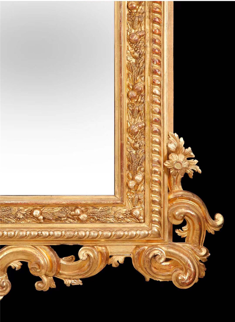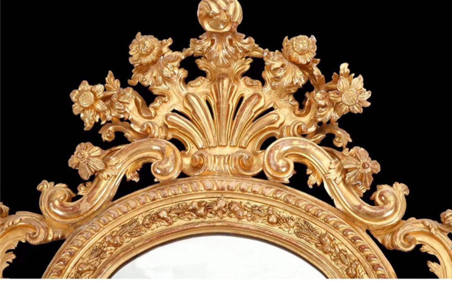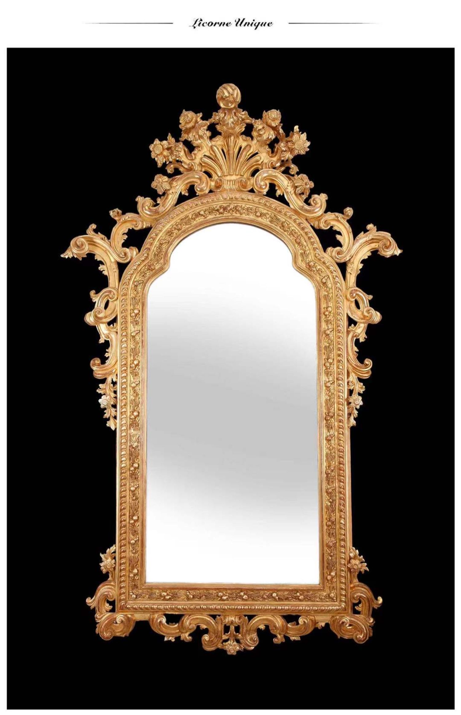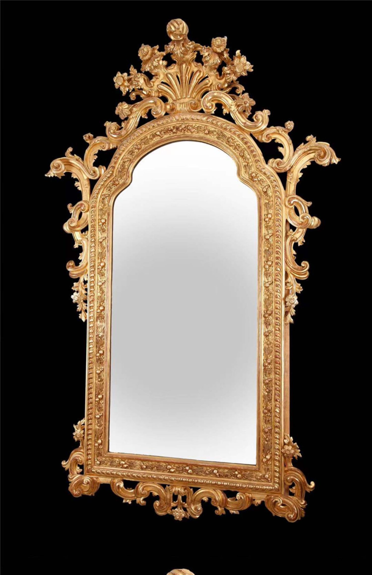 独角鹿西洋古董意大利巴洛克风格金叶鎏金灰墁浮雕大型木质挂镜