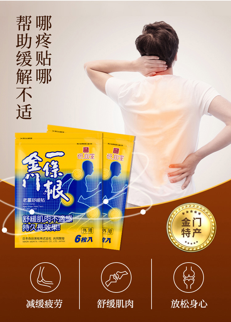 【台湾原装进口】金门一条根贴膏黄色老姜舒缓贴葡萄糖胺贴6贴