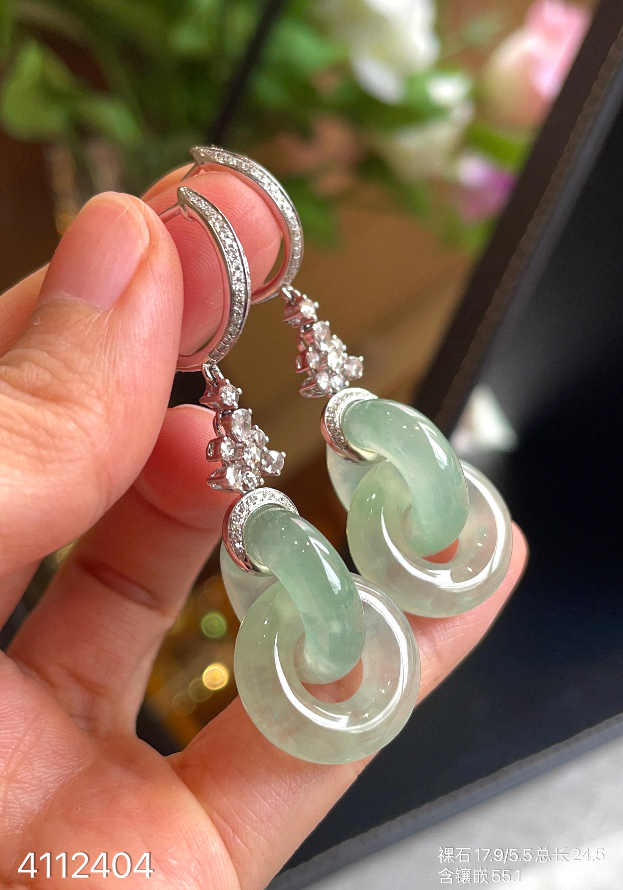 高冰种木那双环耳坠。 59999【4112404】
