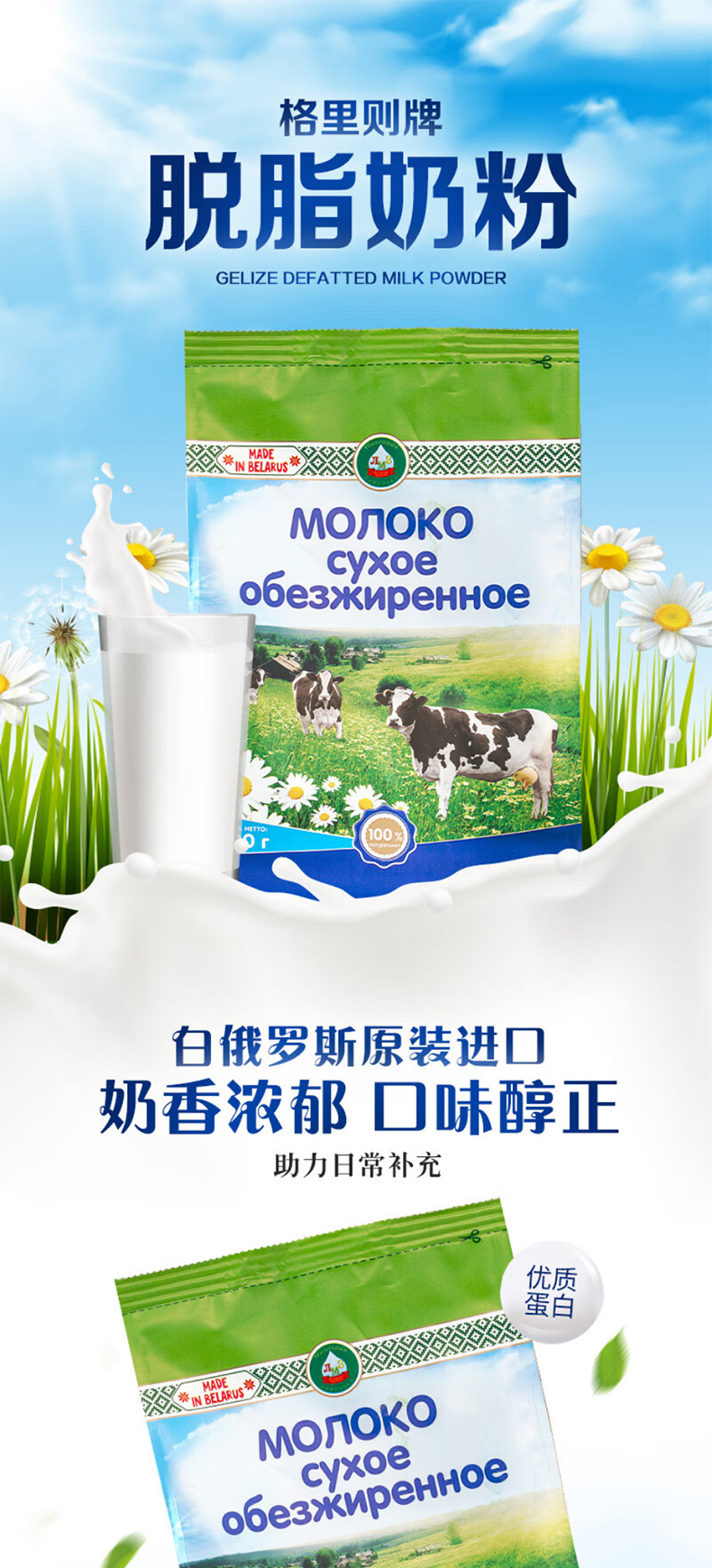 白俄罗斯进口 格里则牌脱脂奶粉400g