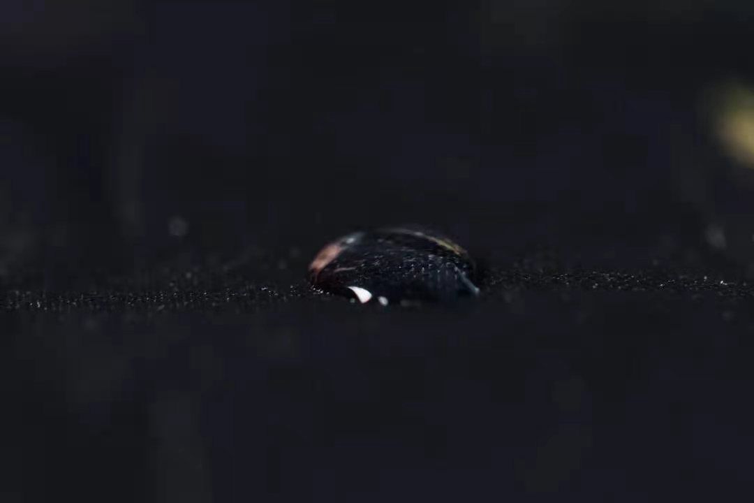 在微距镜头下,普通雨伞上的水珠几乎都是扁扁的
