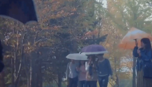 结果一收伞,尴尬了,收伞时不仅卡车门