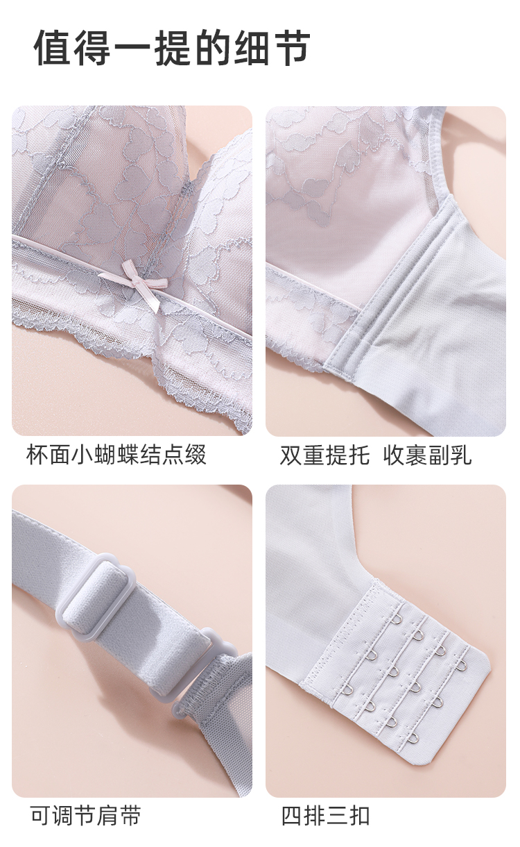 熳洁儿 内衣女聚拢精美蕾丝无钢圈文胸舒适轻薄透气上托收副乳23261506