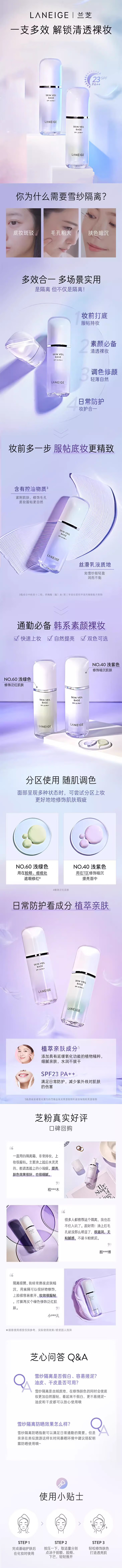 兰芝雪纱丝柔防晒隔离乳 40紫色 30ml #60号绿色 30ml