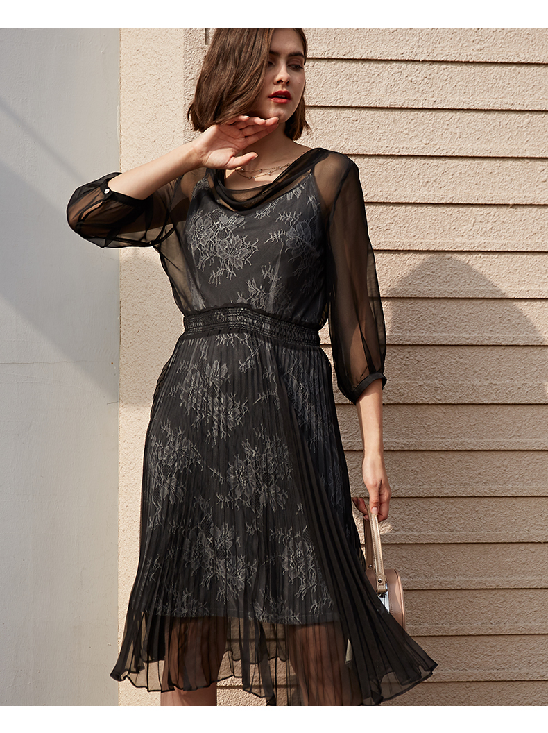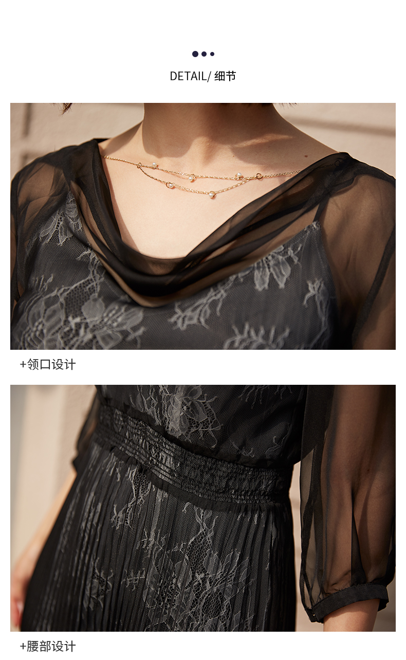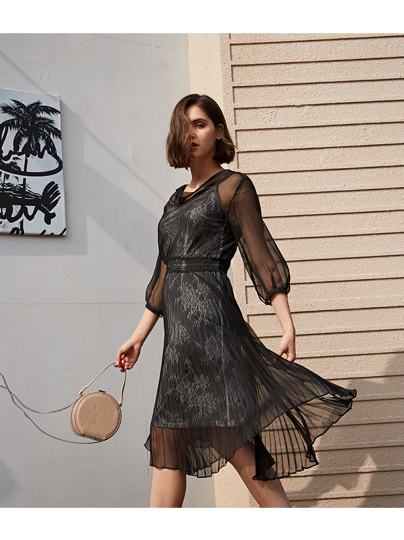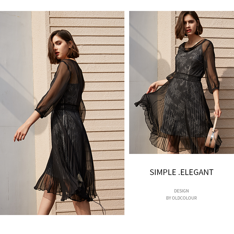 oldcolour夏季新品收腰显瘦时尚蕾丝连衣裙M13103432