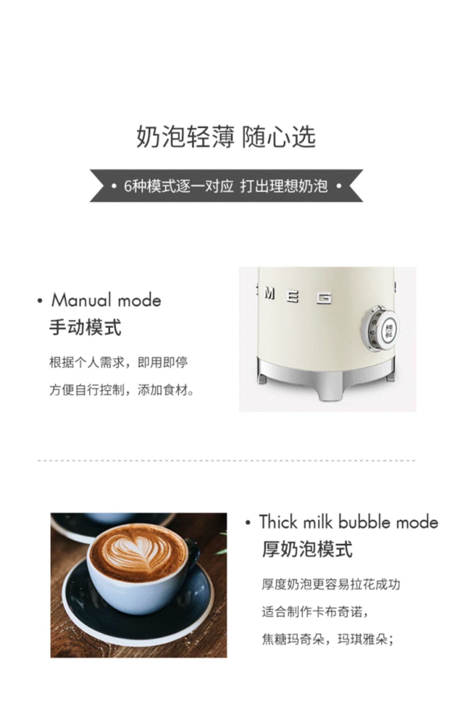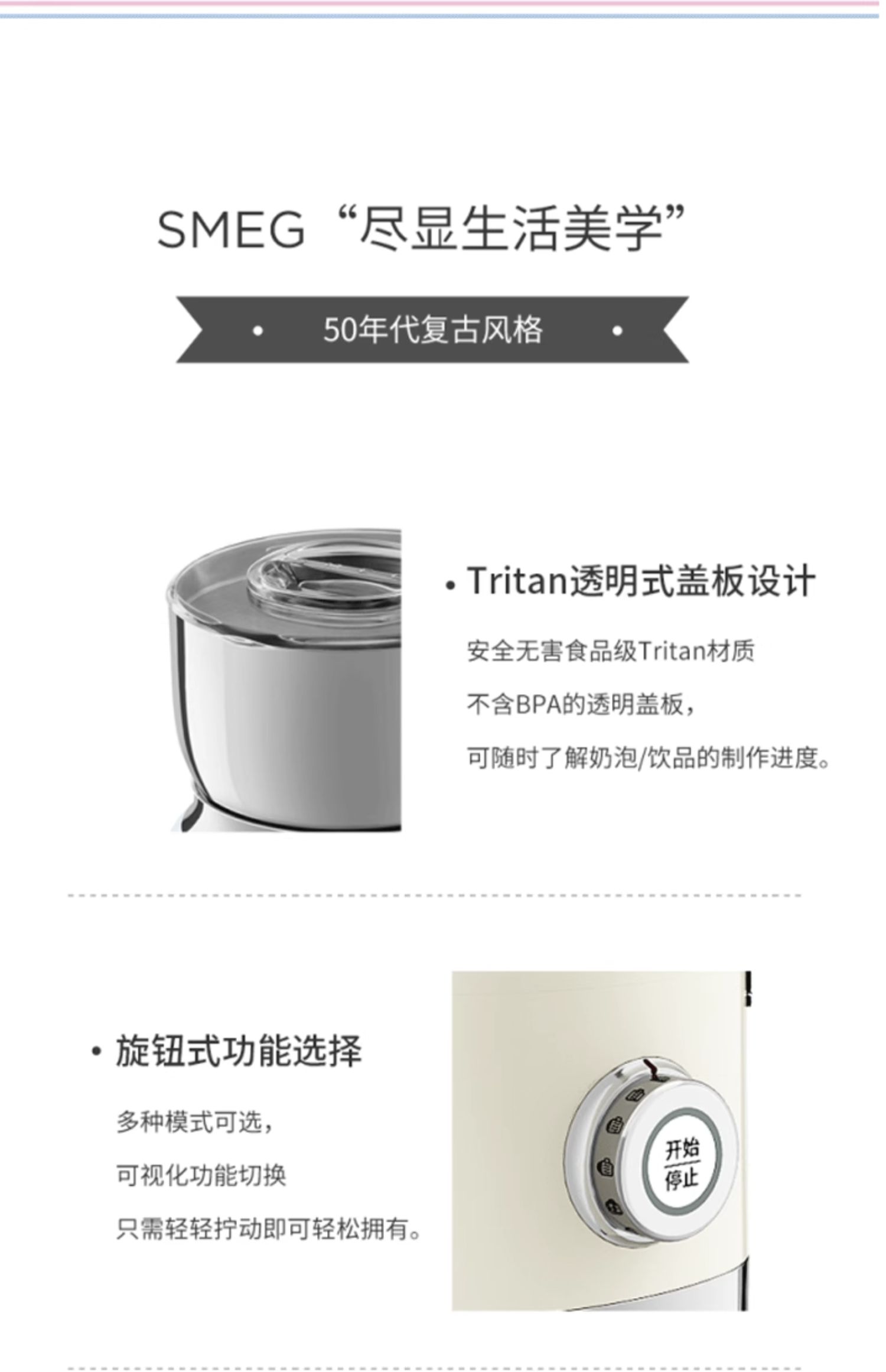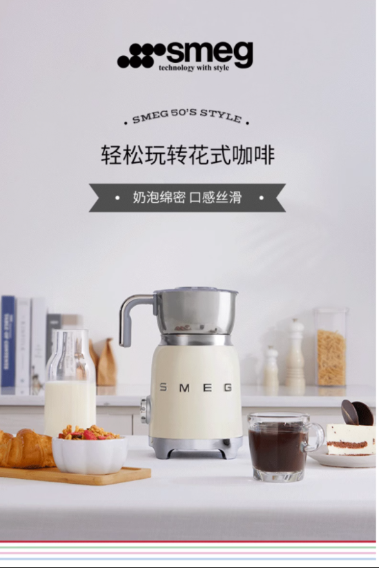 SMEG斯麦格电动奶泡机咖啡奶咖拉花家用全自动冷热打奶器巧克力机