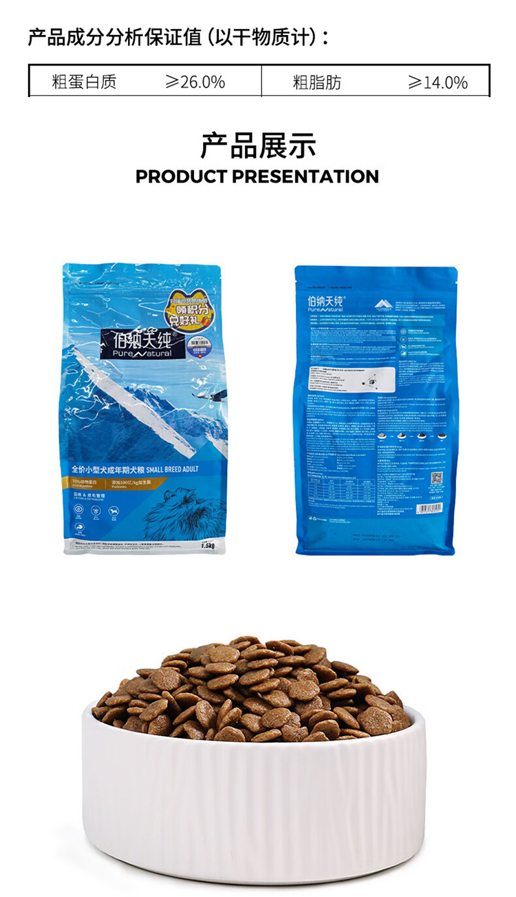 伯纳天纯狗粮小型犬成犬粮贵宾比熊泰迪通用粮1.5kg