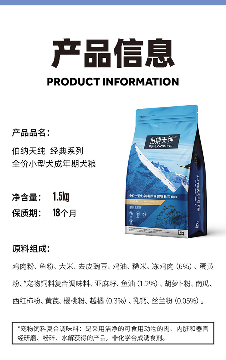 伯纳天纯小型犬成犬狗粮通用型1.5kg博美比熊泰迪通用