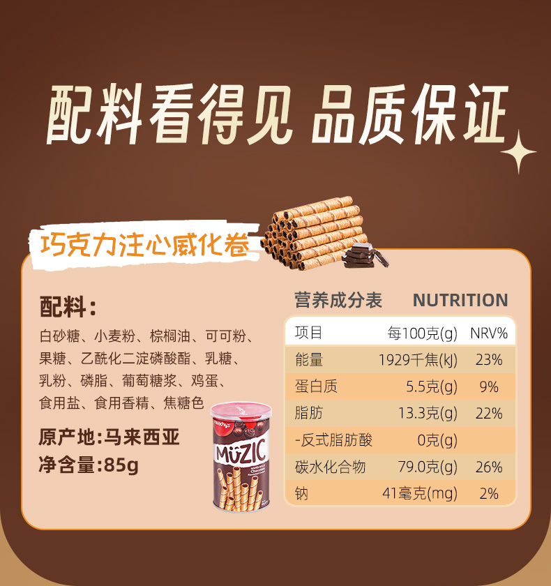 马奇新新 马来西亚进口巧克力注心蛋卷 85g*6罐
