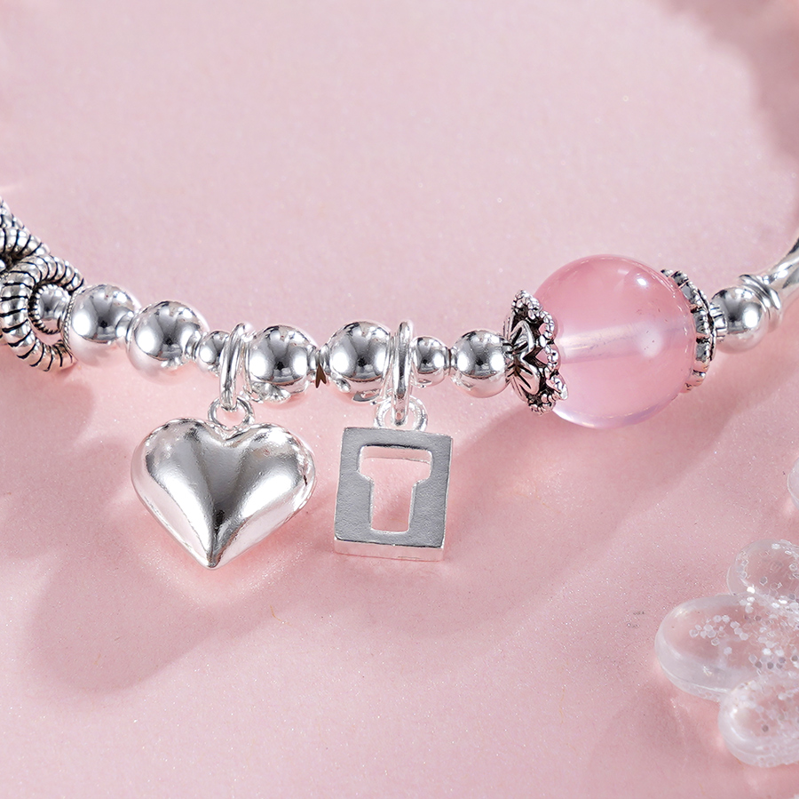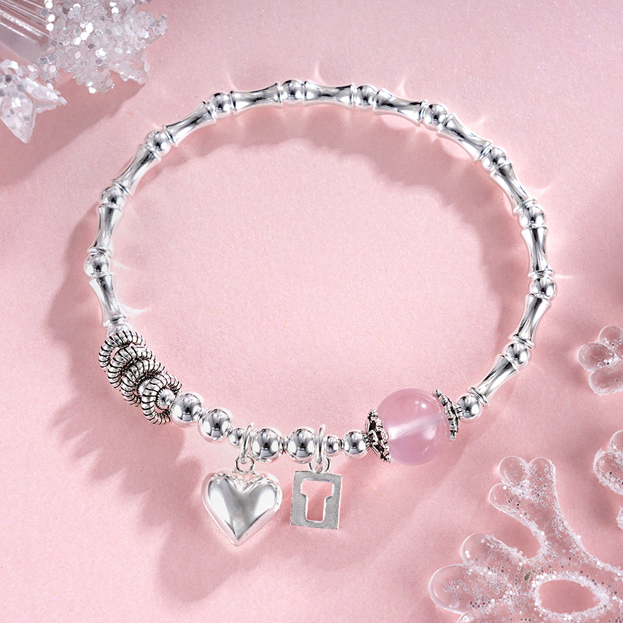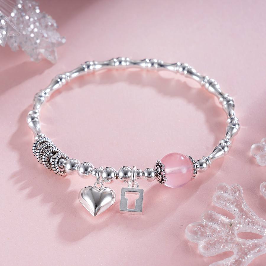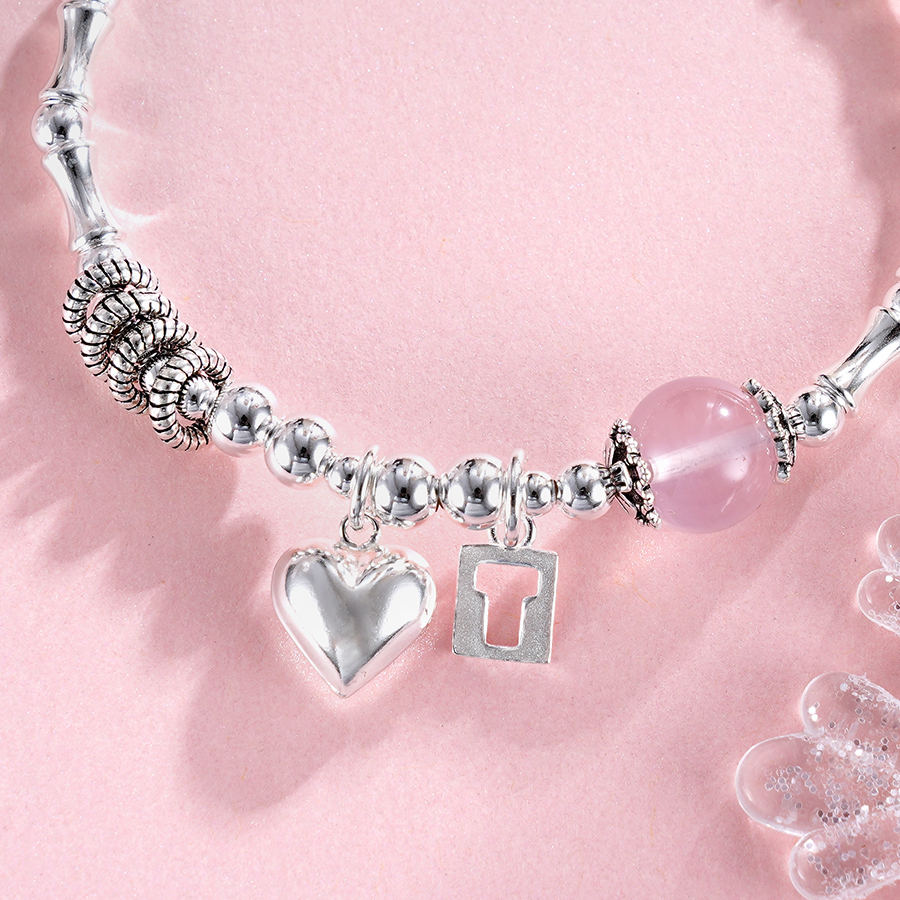 【寓意】:经典圆珠手串,巧妙融合了爱心元素,通过抛光打磨,精致细腻。点缀浪漫粉晶,优雅耐看,寓意爱意满满。